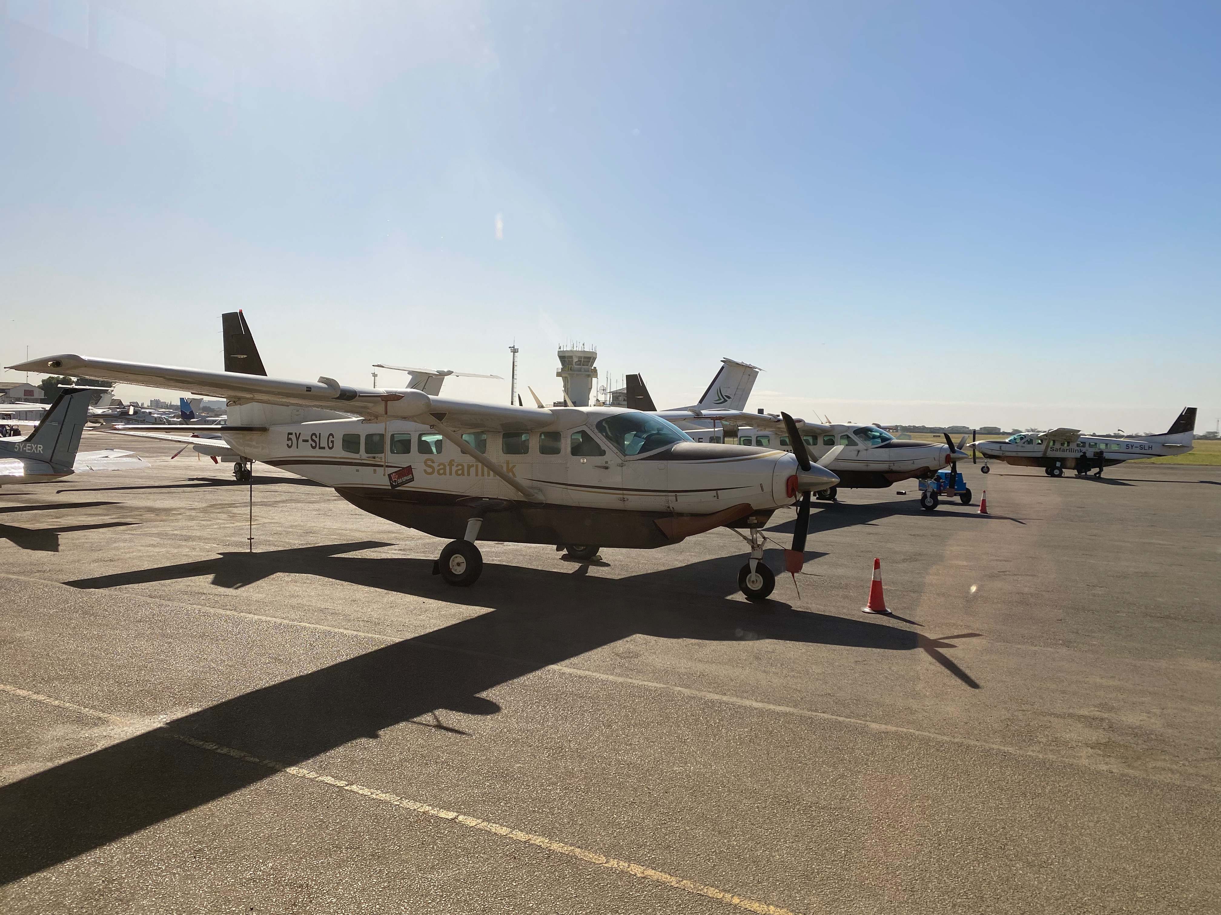 This morning we flew from Nairobi, Wilson Airport to Sasaab in the heart of Samburu County, Kenya. Below is the single engine airplane that we took off on our adventure in. It was a quick hour hop from Nairobi to Sasaab Airstrip past Mount Kenya and over the multitudes of tea and flower agricultural areas. SafariLink did an excellent job of getting us there.