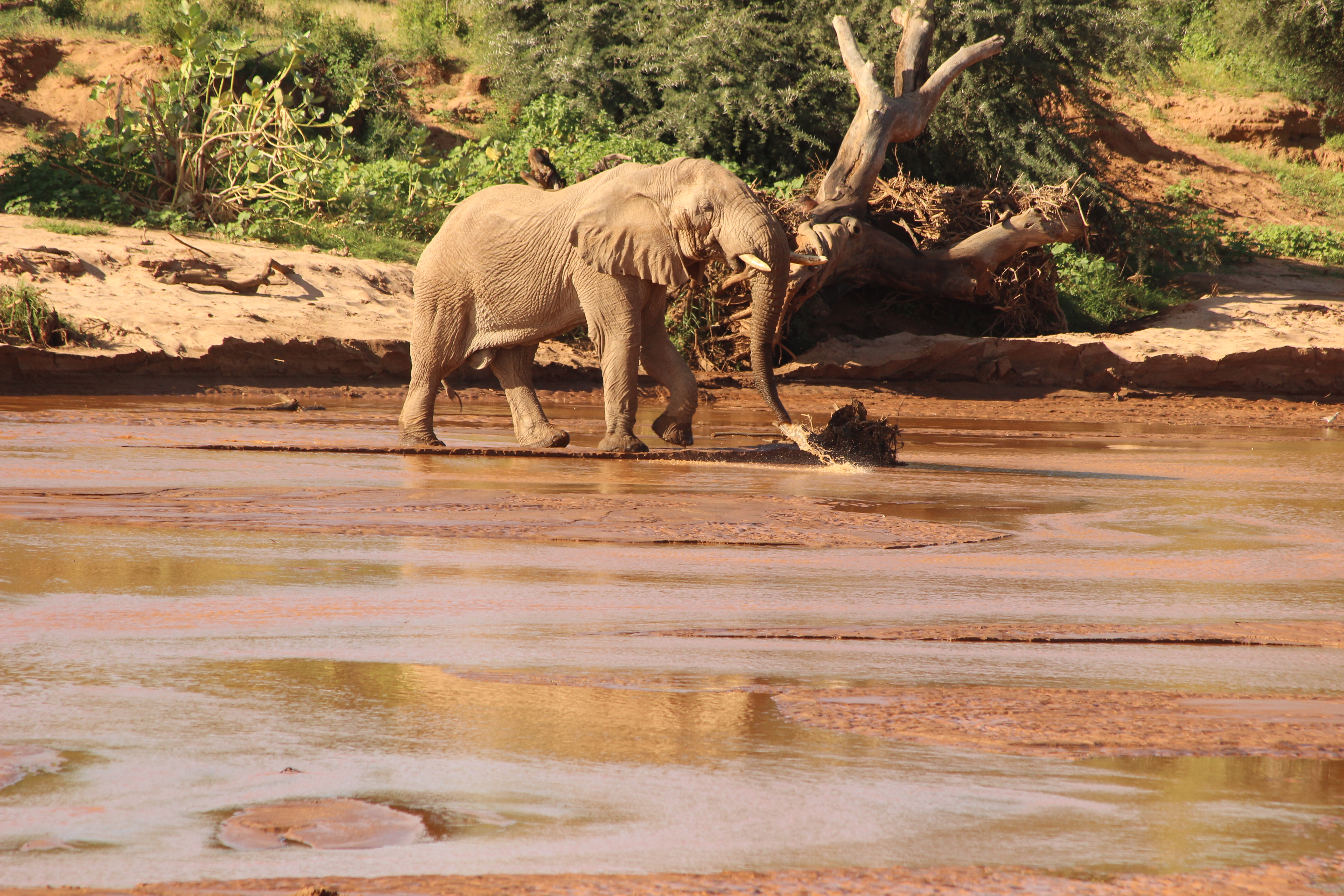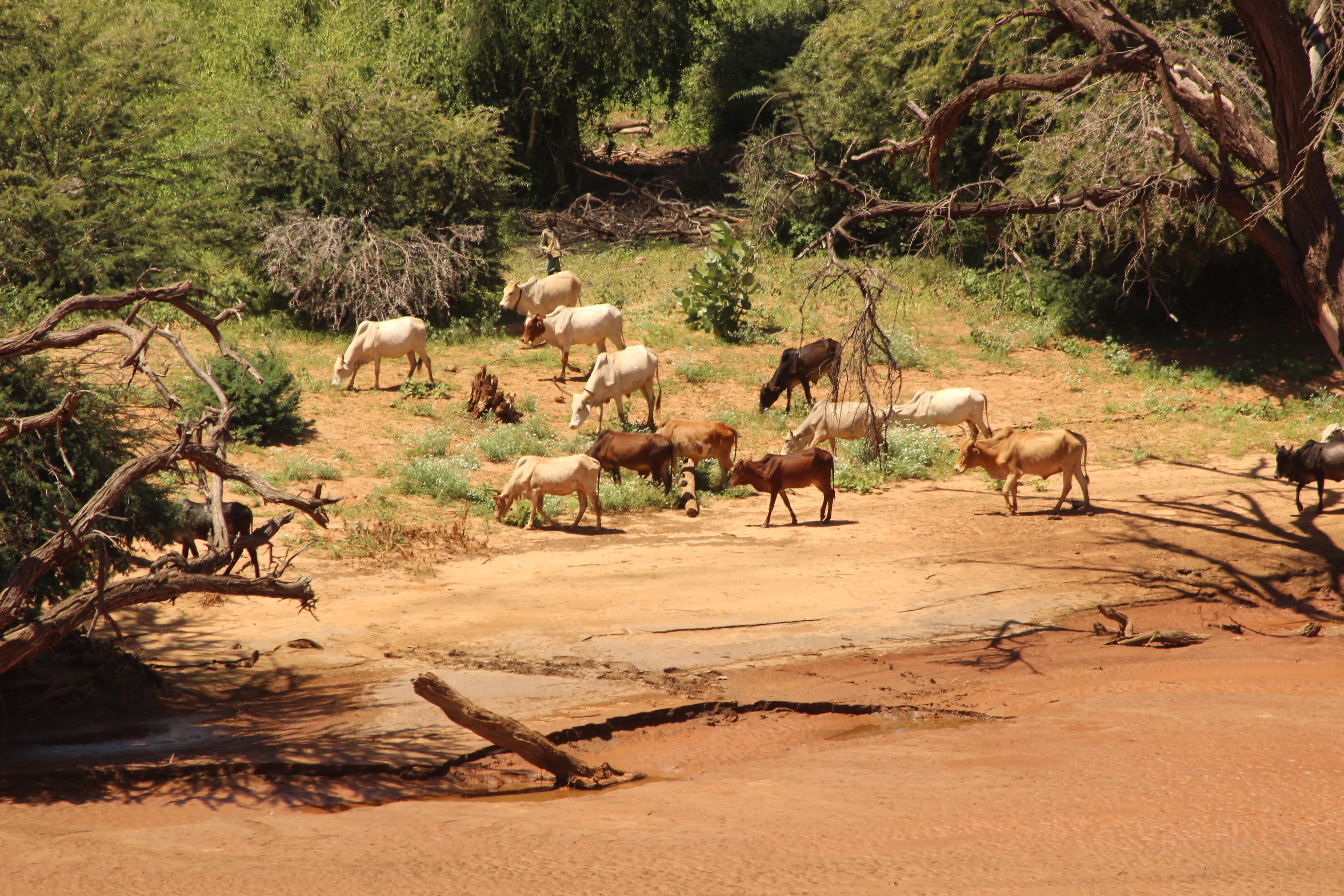 After getting to the amazing Sasaab Camp we settled in and had a terrific lunch of salads and fried fish(yes, I ate some for the first time in close to 50 years!), the lunch as amazing and we were treated to different varieties of Hornbills outside of the open air dining area. After lunch it was off to our tent for some rest before our first game drive. During the afternoon we observed Samburu tribesmen watering their livestock in the Eywaso Nyiro river.
