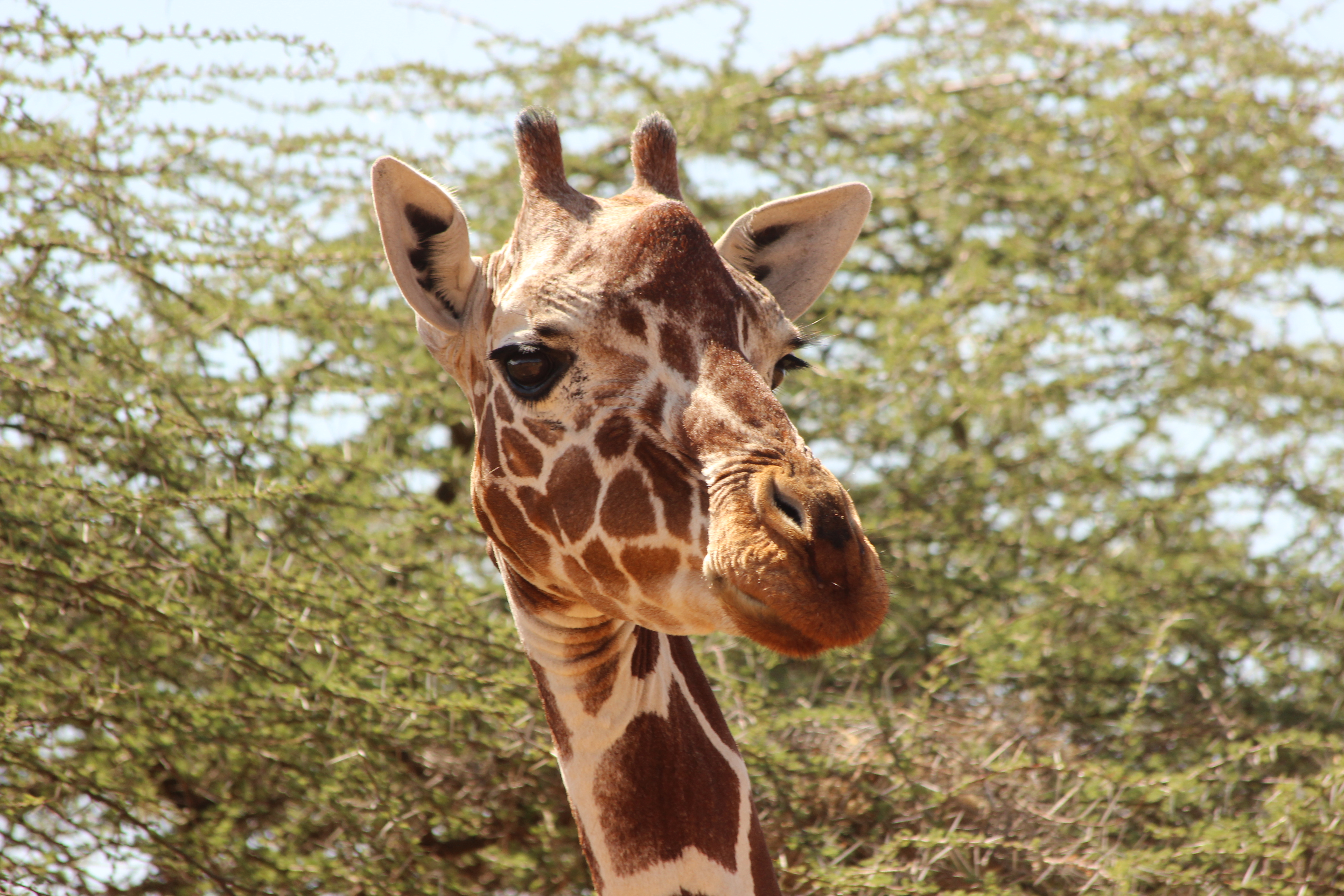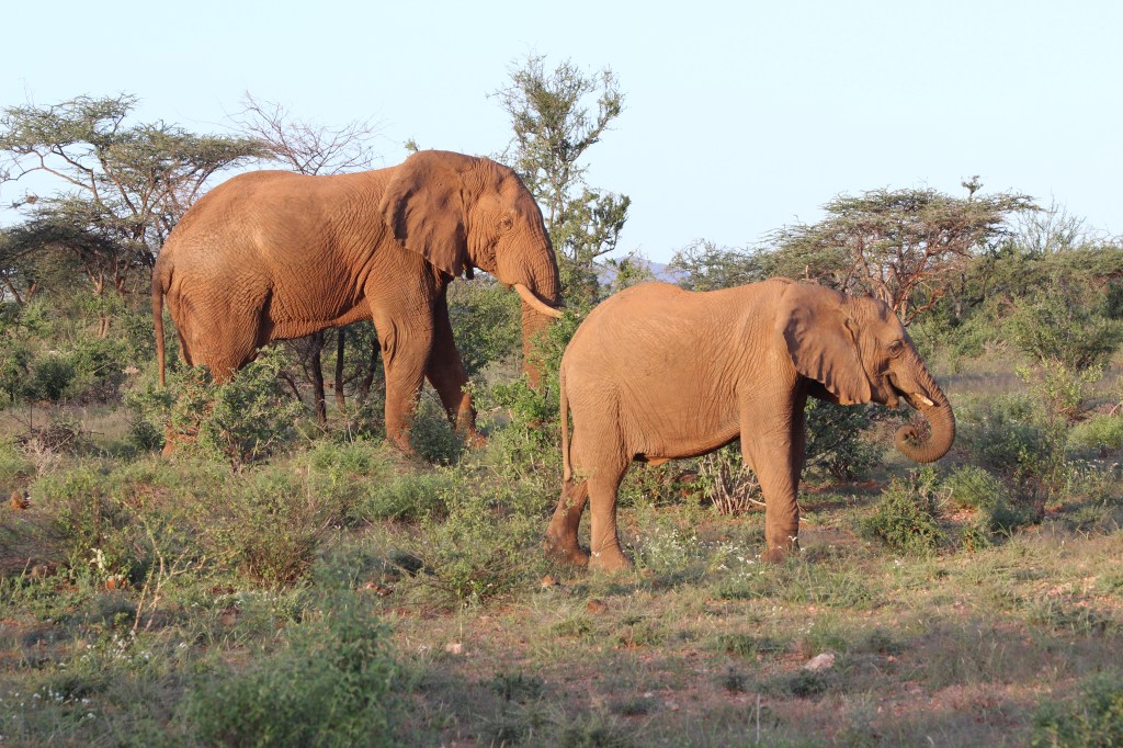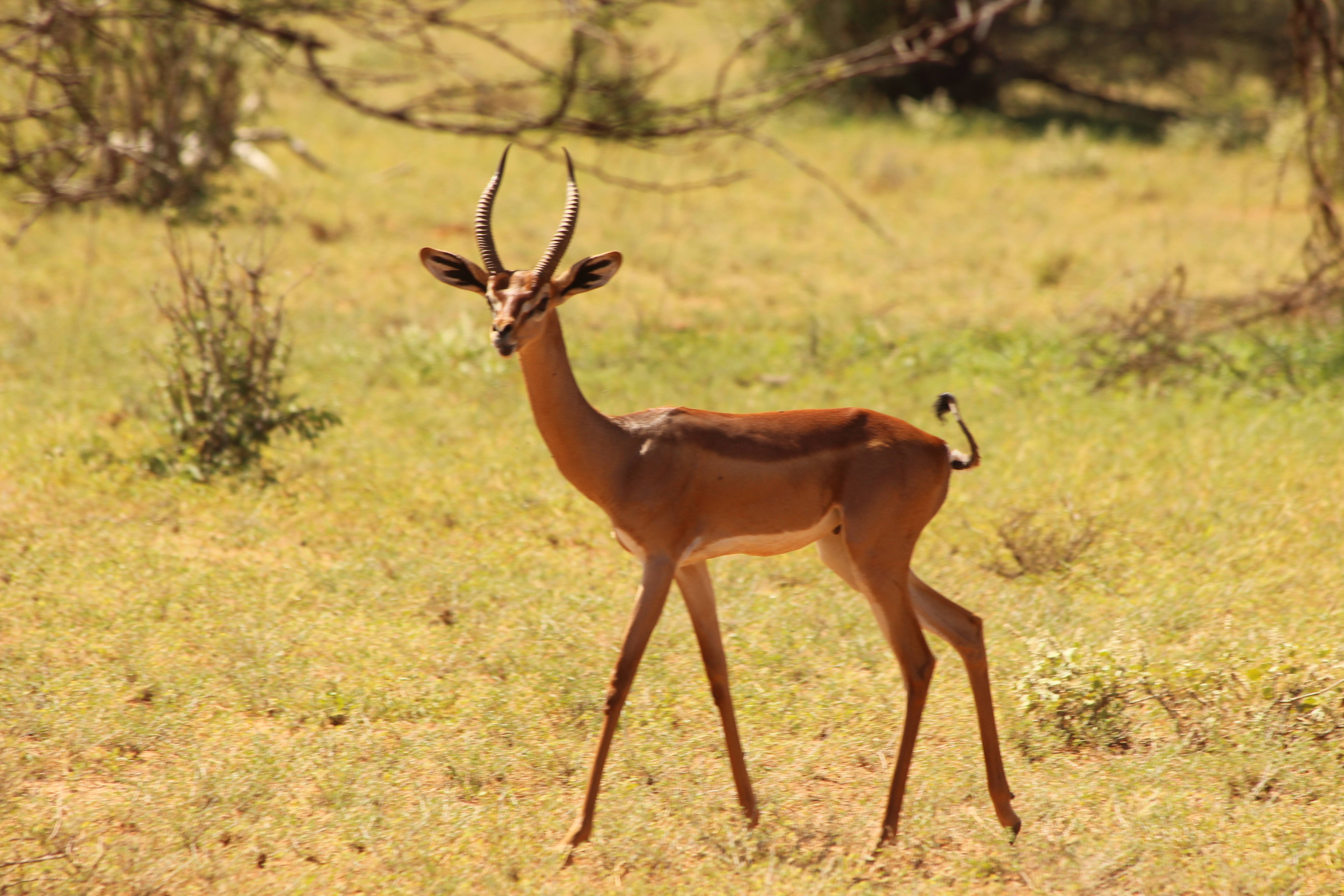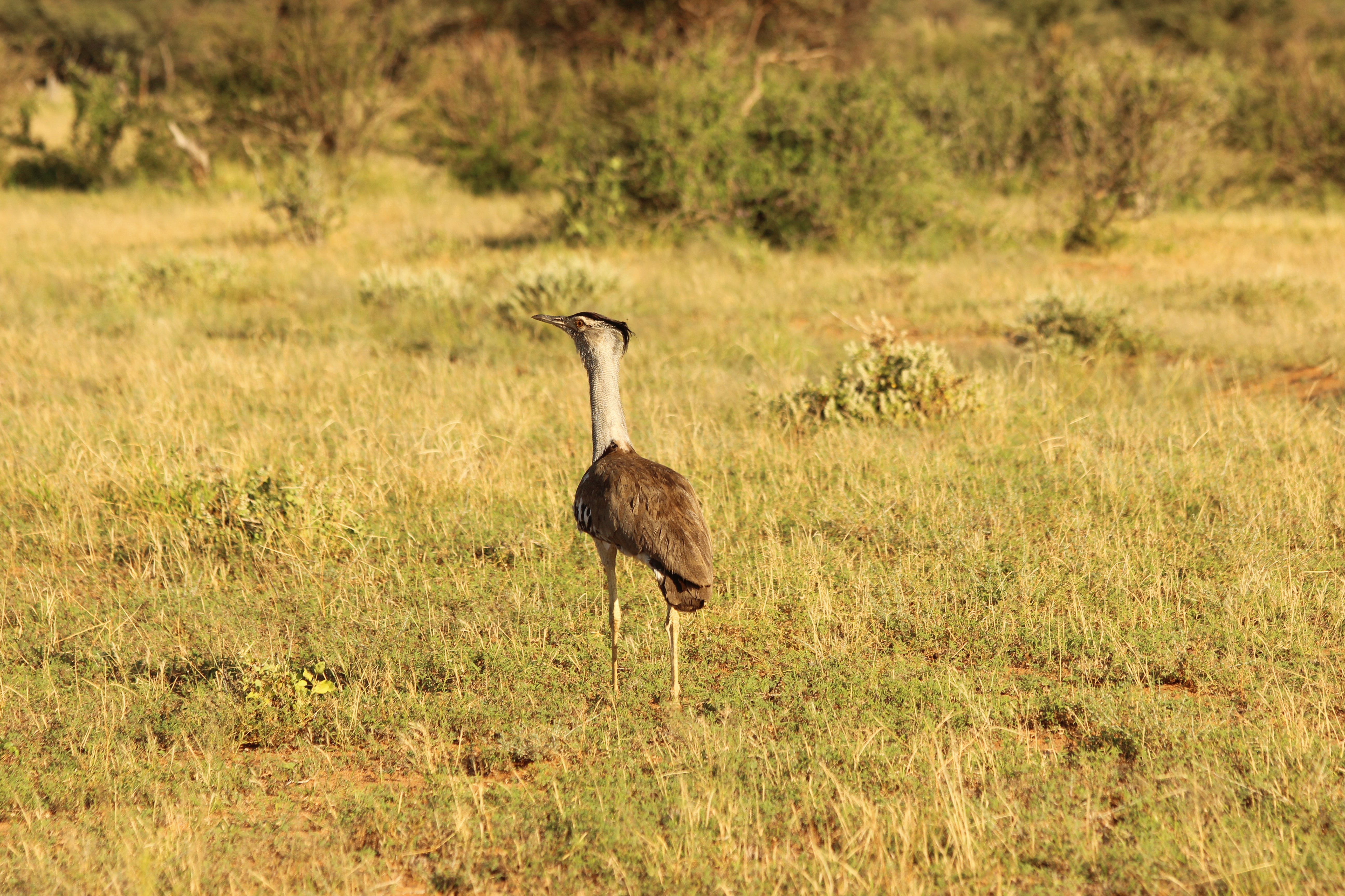 After an exciting pre-breakfast drive, we stopped on the bank of the river. While our driver cooked us an excellent breakfst on the gas cook top that was built into the safari vehicle. We had passion fruit juice and hot tea provided. Sandra and I had a good laugh but you will have to ask her about that. The morning was chilly and the hot bush breakfast was most welcome. Once we had cleaned and packed up we were off for the rest of our morning drive. Spotted a big bull elephant crossing the river and getting a drink. Spotted Impala and Warthogs and a much closer Oryx. The next strange critter is a Gerenuk. I had never heard of them before, sort of looks like a cross between a Giraffe and an antelope. The terrain sort of opened up and we saw our first Reticulated giraffe. Reticulated giraffe, Gerenuk, Somali ostrich, Grevy’s Zebra and Oryx are considered to be the Samburu Special Five and we got to see them all before lunch on the first day! Our amazement wasn’t over yet, before we left for lunch we stumbled upon this fat Cheetah. We feel like he has just eaten a baby gazelle or impala as there was a frantic female nearby.