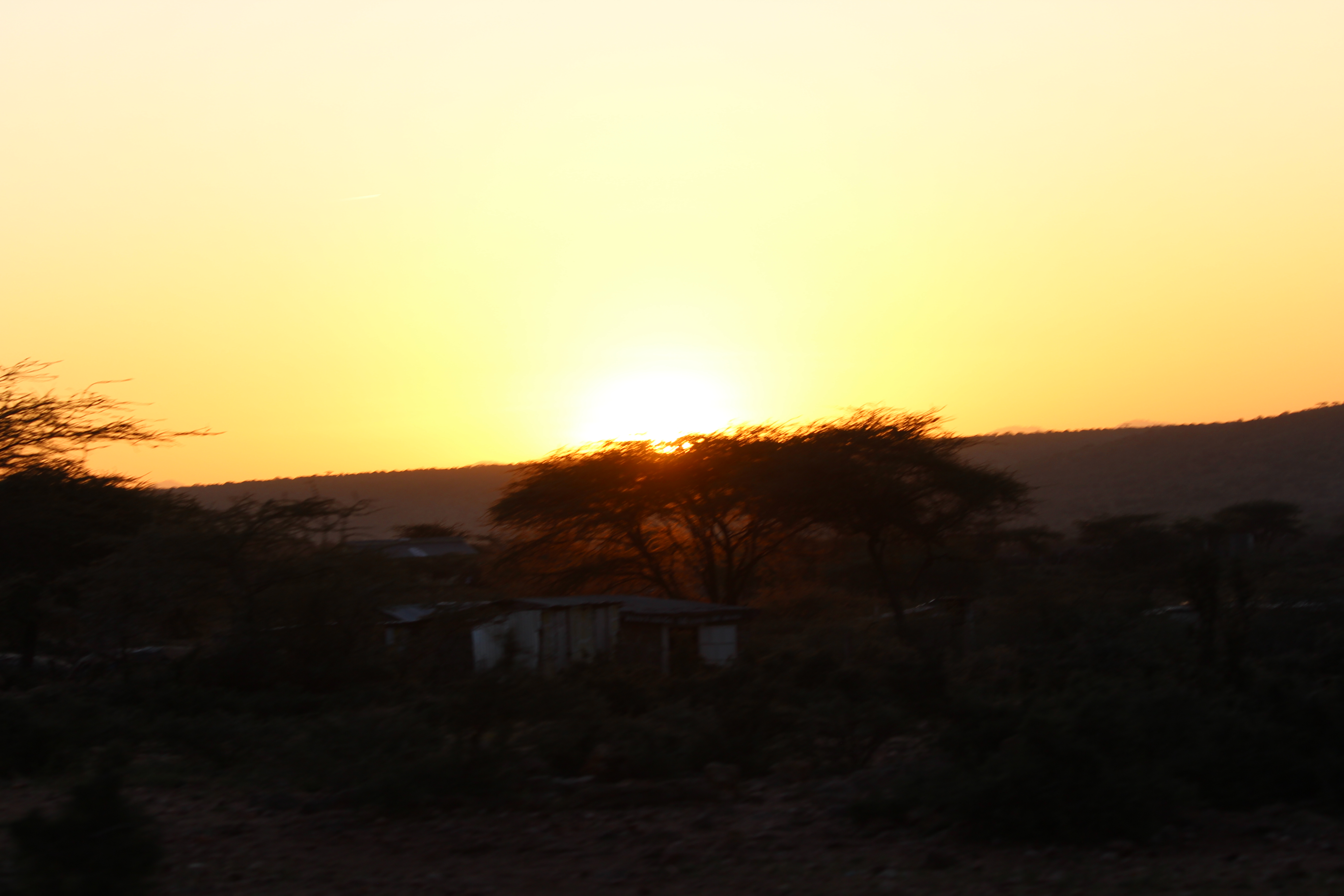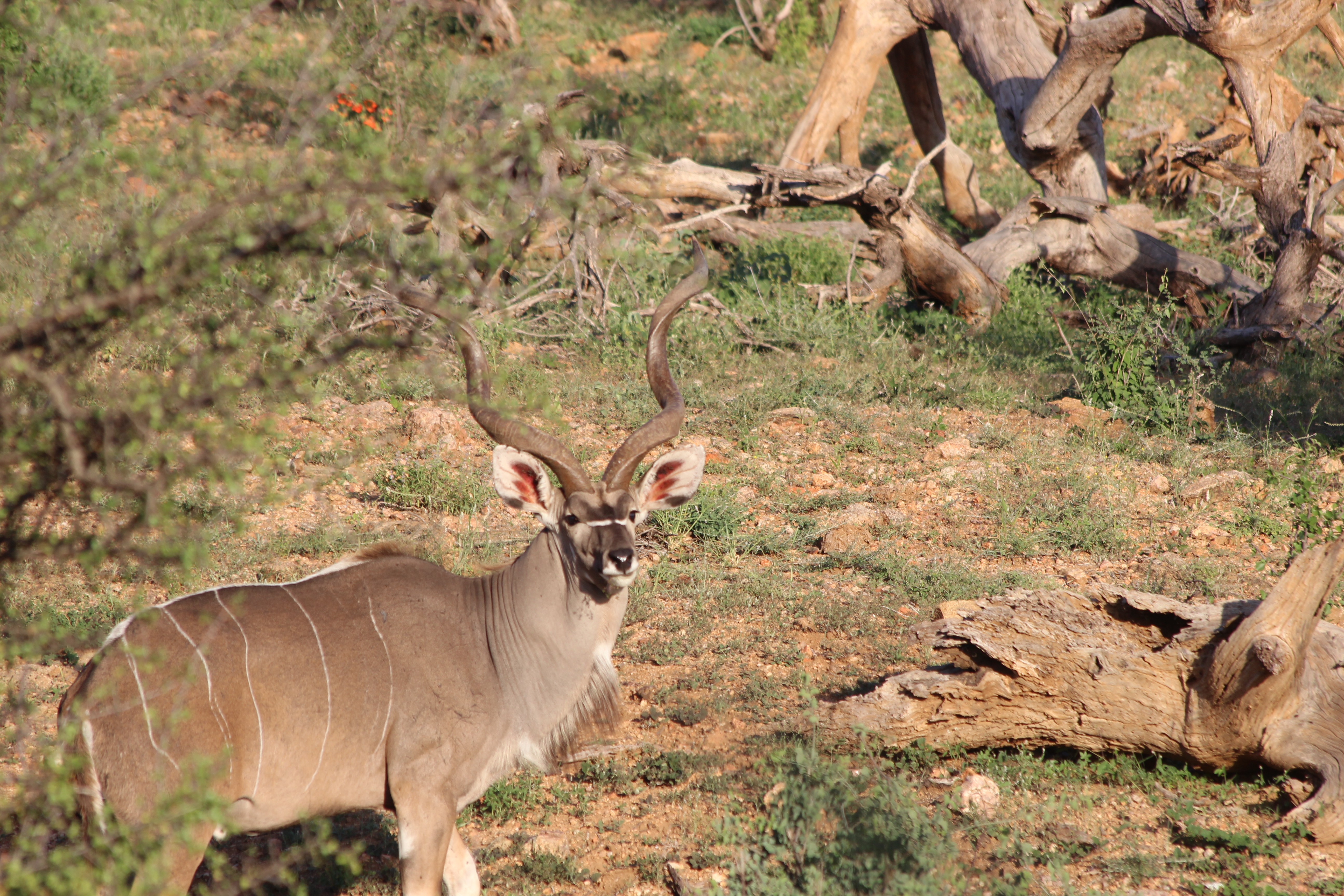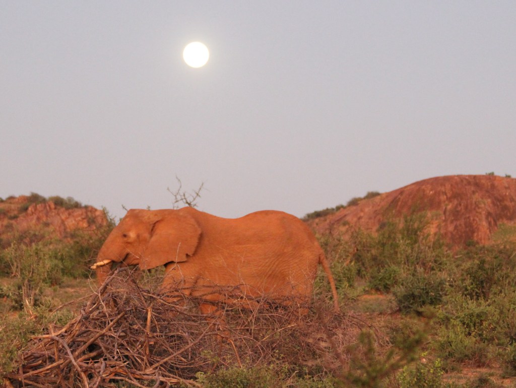 Our third drive started out with a rare sighting of an Eagle owl in daylight. We then saw a Greater Kudu, note his amazing spiral horns. We then ran into another troop of baboons. This female has a infant clinging to her chest. We were tracking Leopard. Sadly we didn’t see the Leopard that evening but something ran the baboons up a tree. Last sight of the Samburu elephants, I love elephant eyes, so serene and calm. On the way back we were treated to a bush dinner with a bonfire and lanterns under the stars. We had sausage, lamb and chicken along with side dishes. The perfect end to a perfect day.