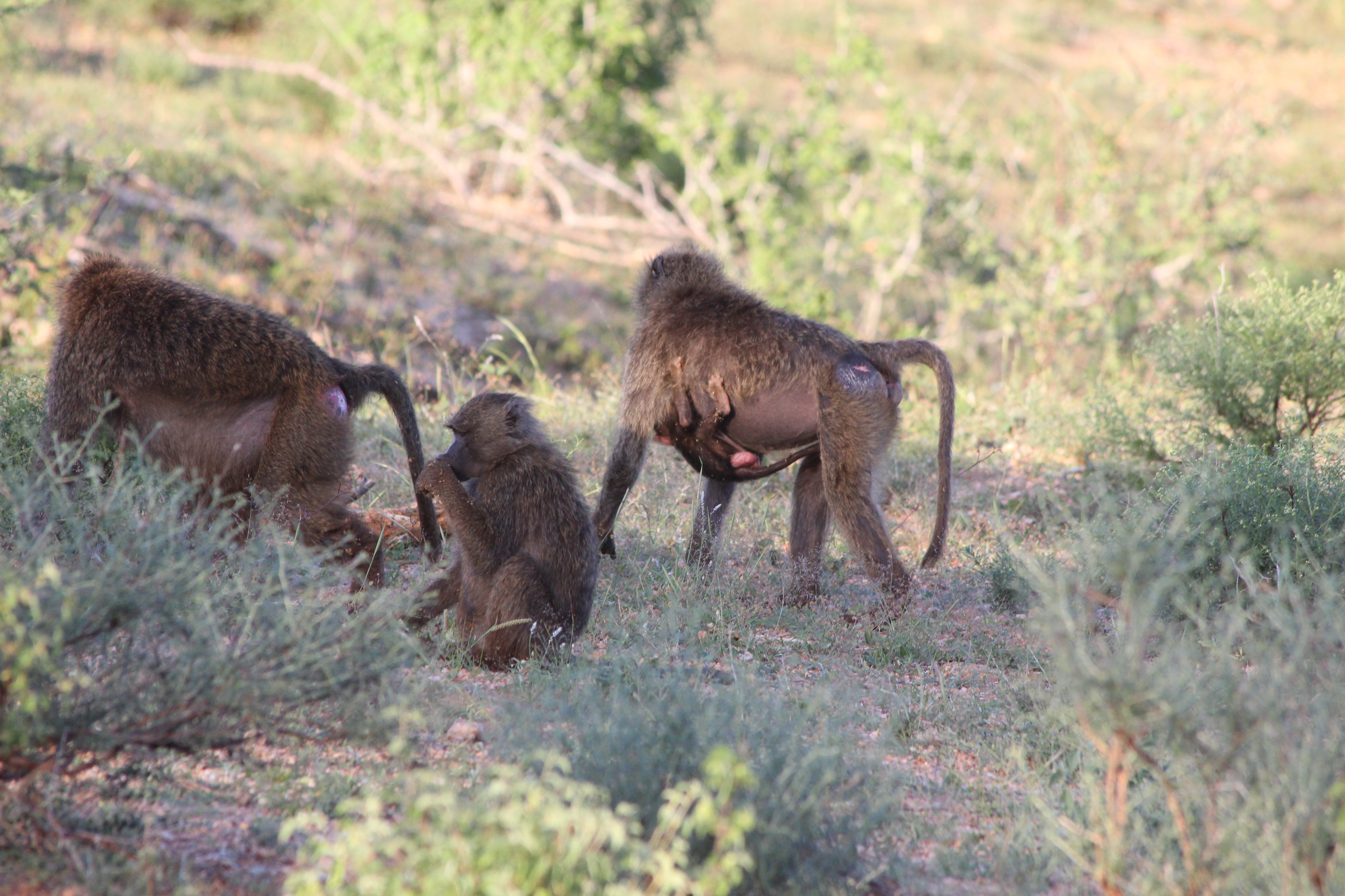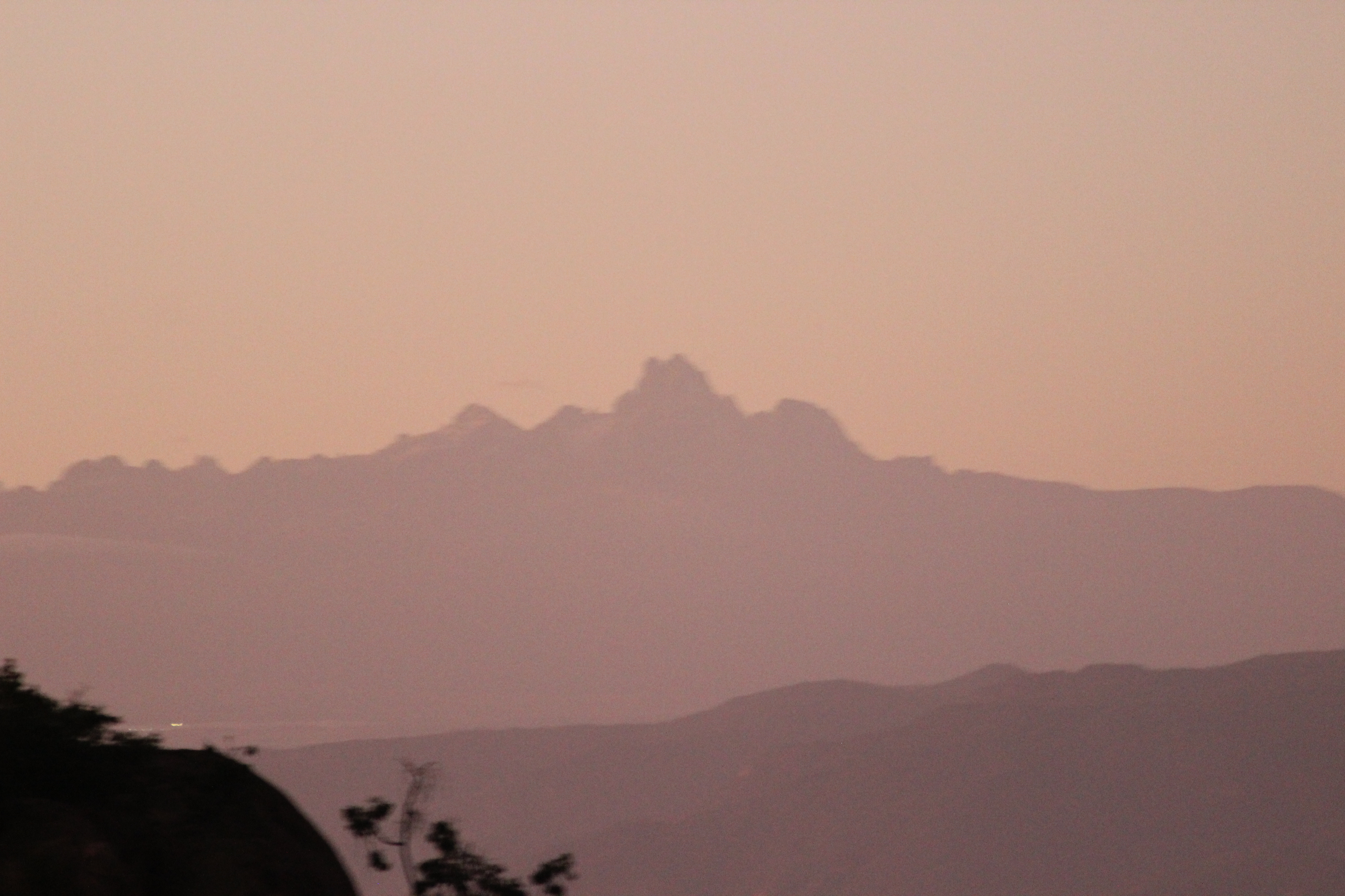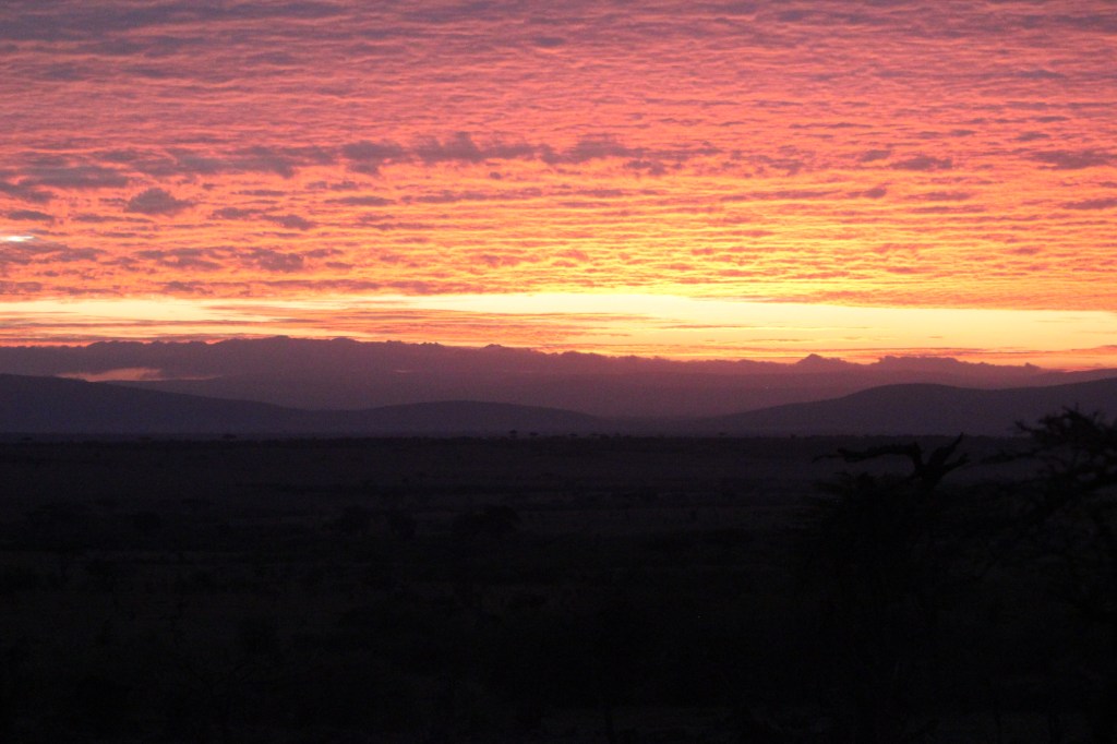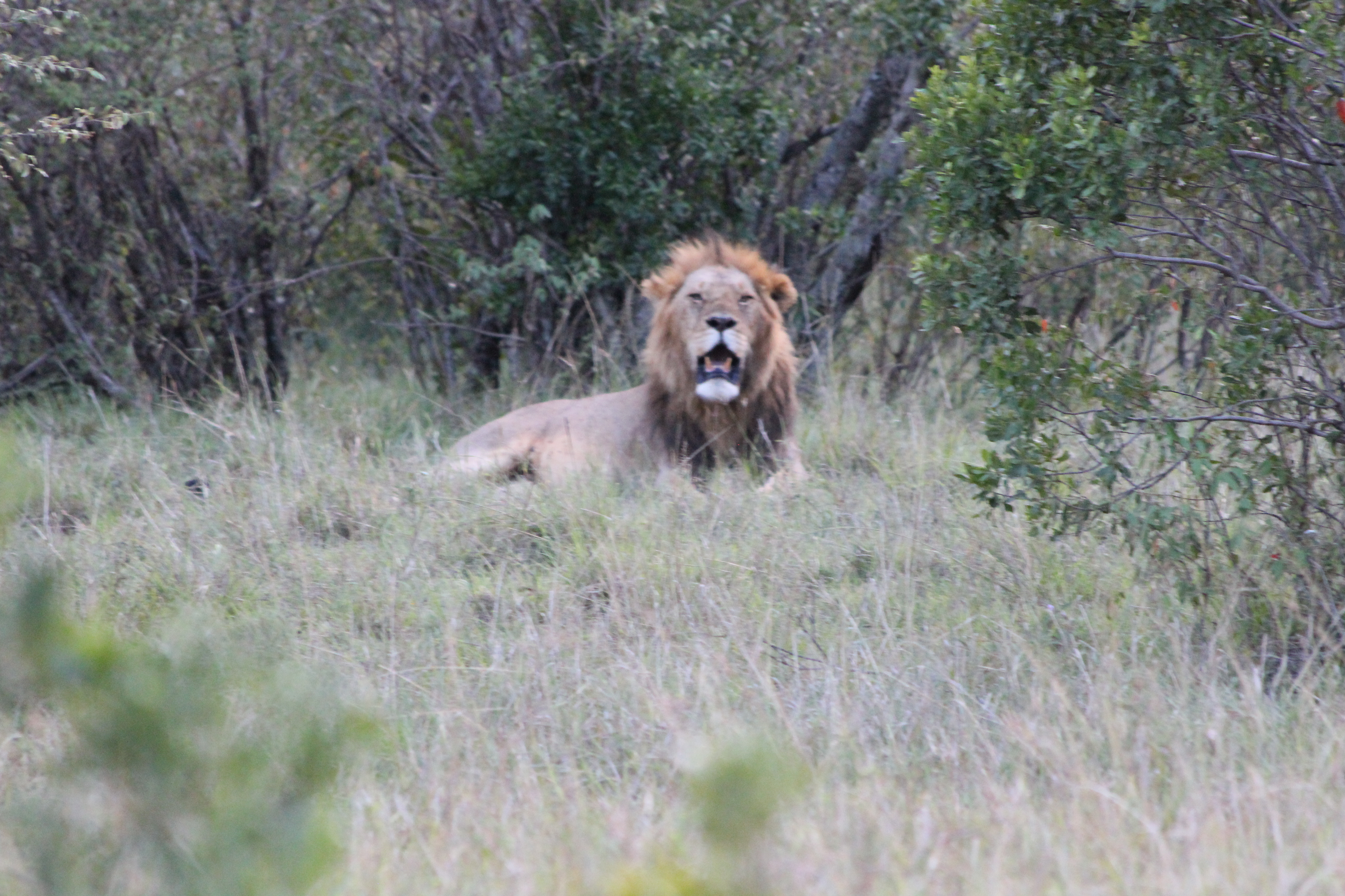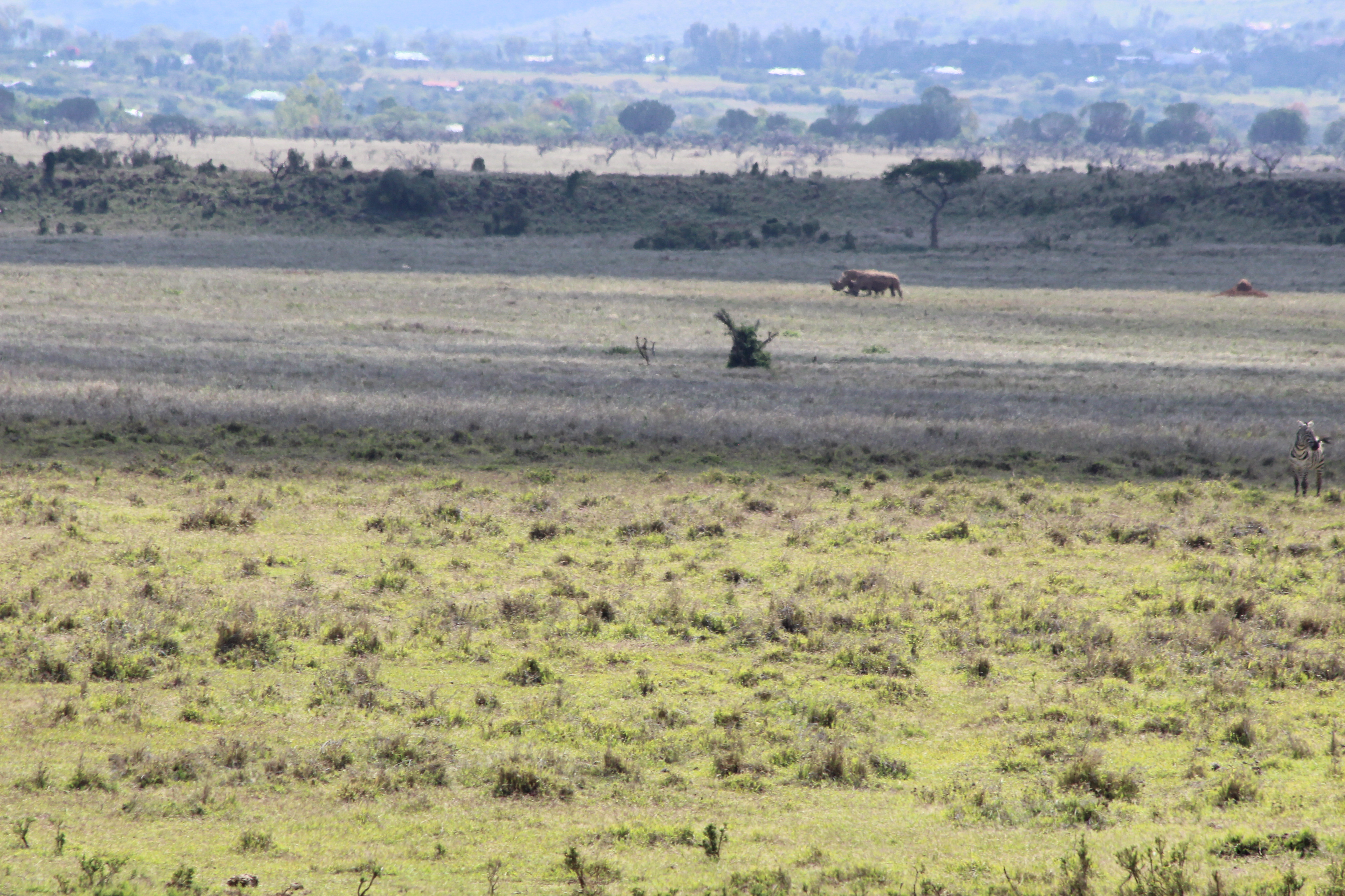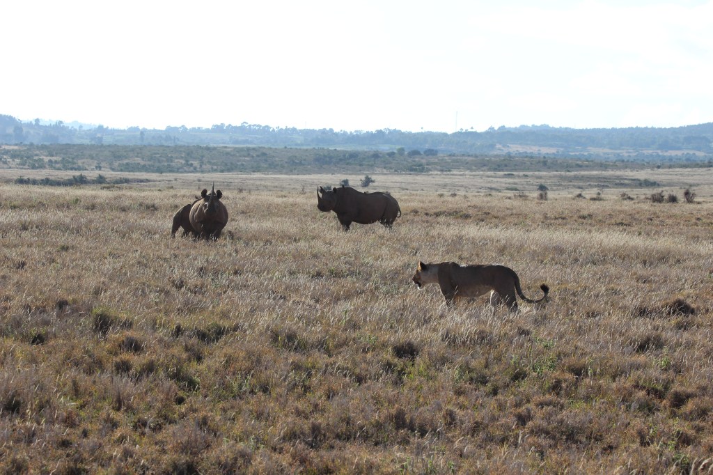 Woke up to another crystal clear morning with an awesome view of Mount Kenya. It is an extinct volcano and many of the ridges and and hills around Lewa are ancient lava flows. We tracked another leopard this morning and Andrew and I got a glimpse of it as it jumped from a tree. They really are illusive animals. We also got to have one of our first encounters with a Spotted hyena. Disney has really given them a bad rap and they are really an important part of the overall ecosystem. We got treated to our first Lewa lions and Black Rhino. Typically White and Black rhino don’t hang out together but we had some that were sort of being confrontational with each other. Had a bush breakfast in the midst of a troop of Baboons and saw many more herd animals.
