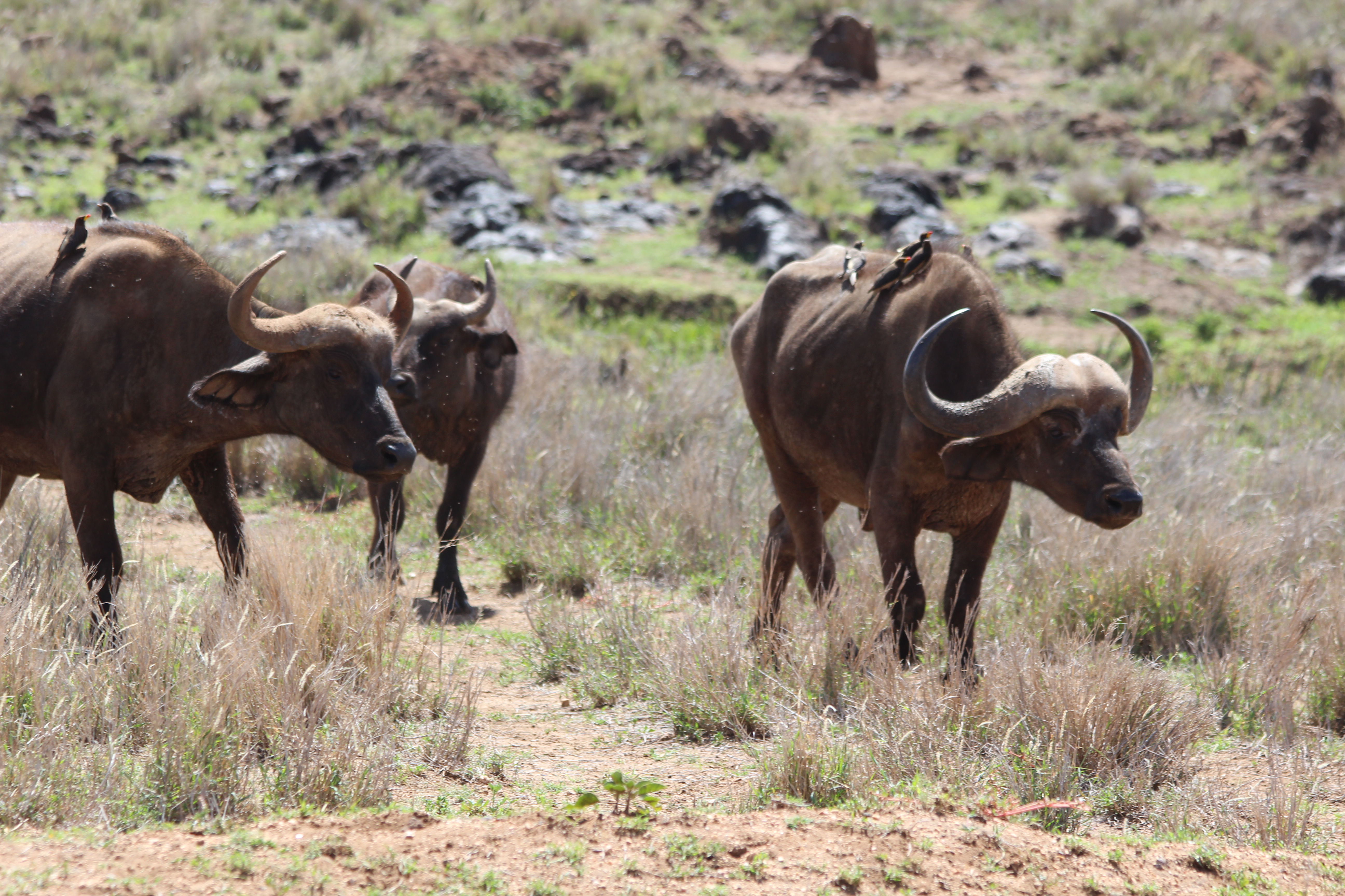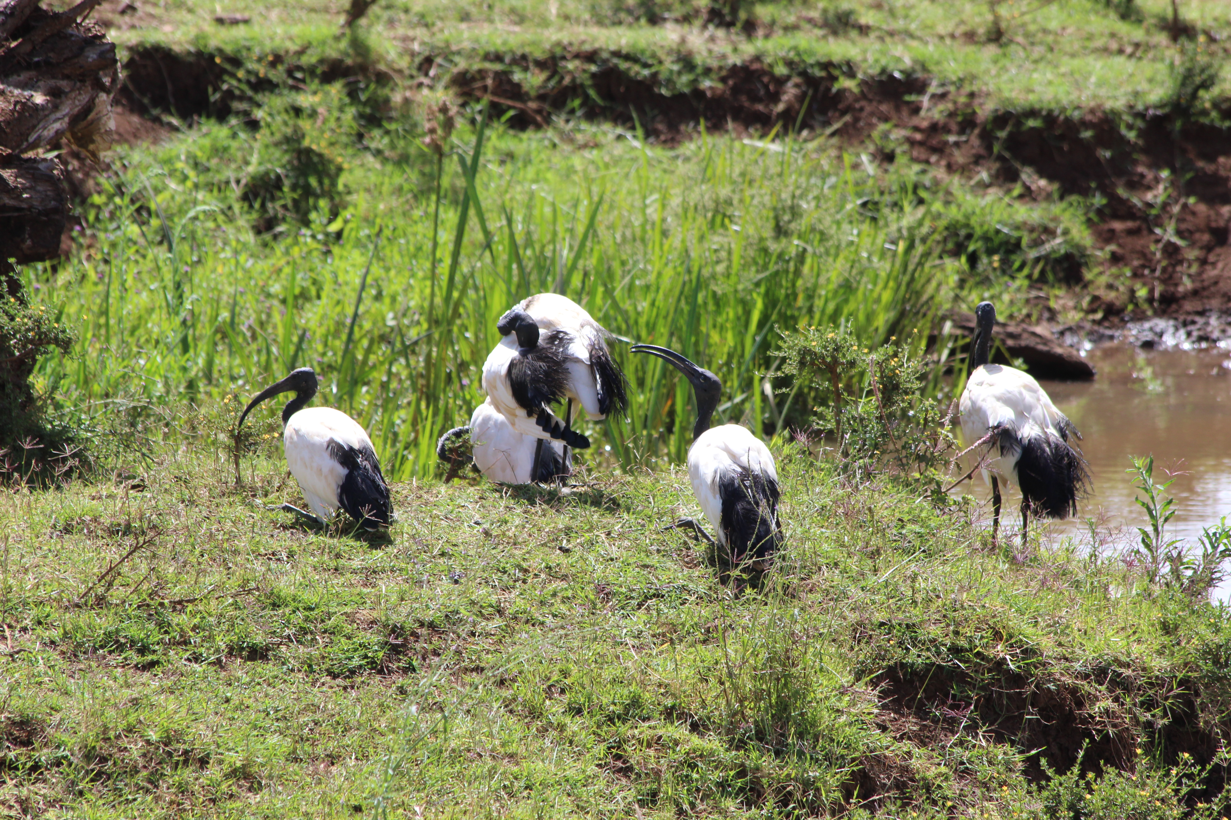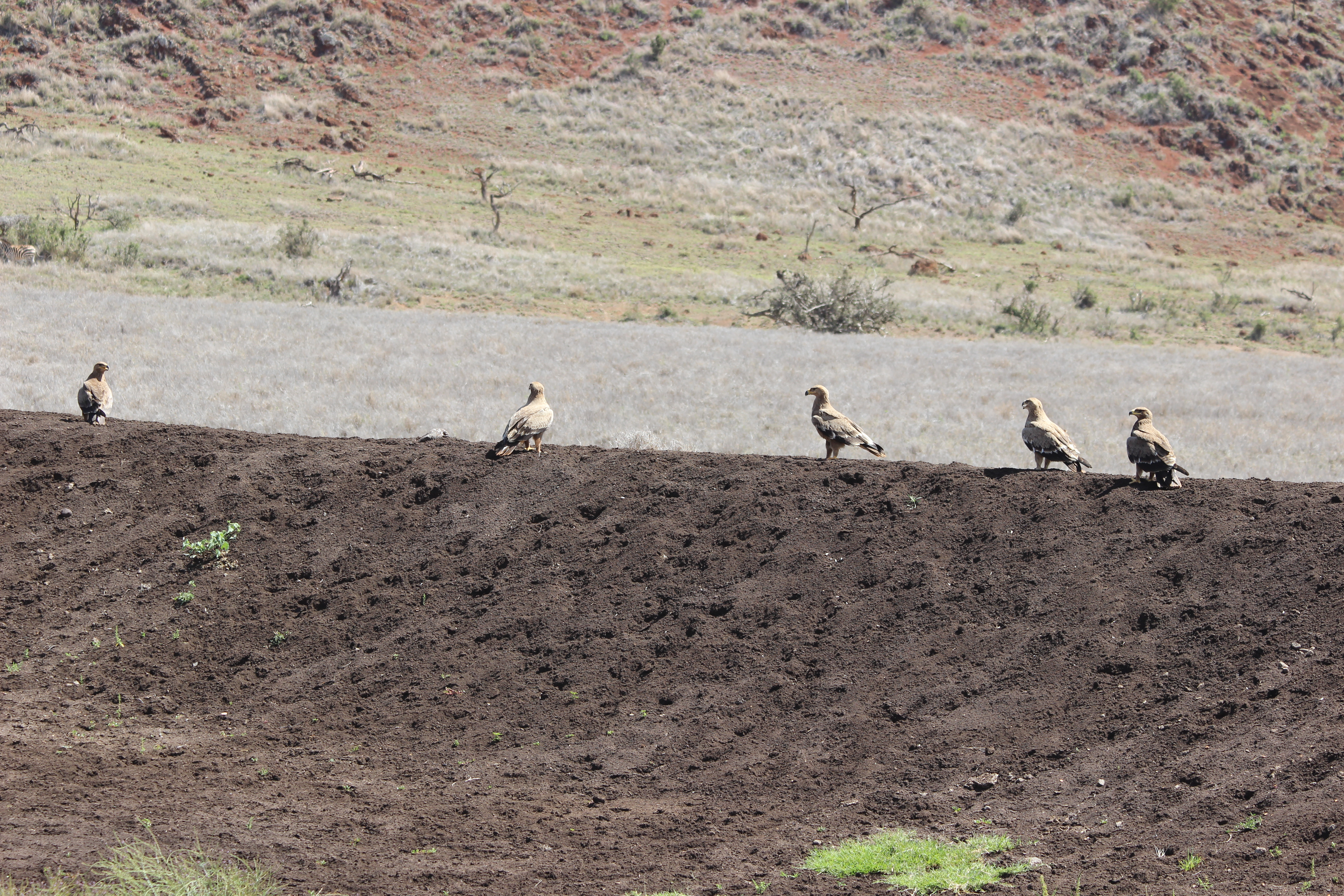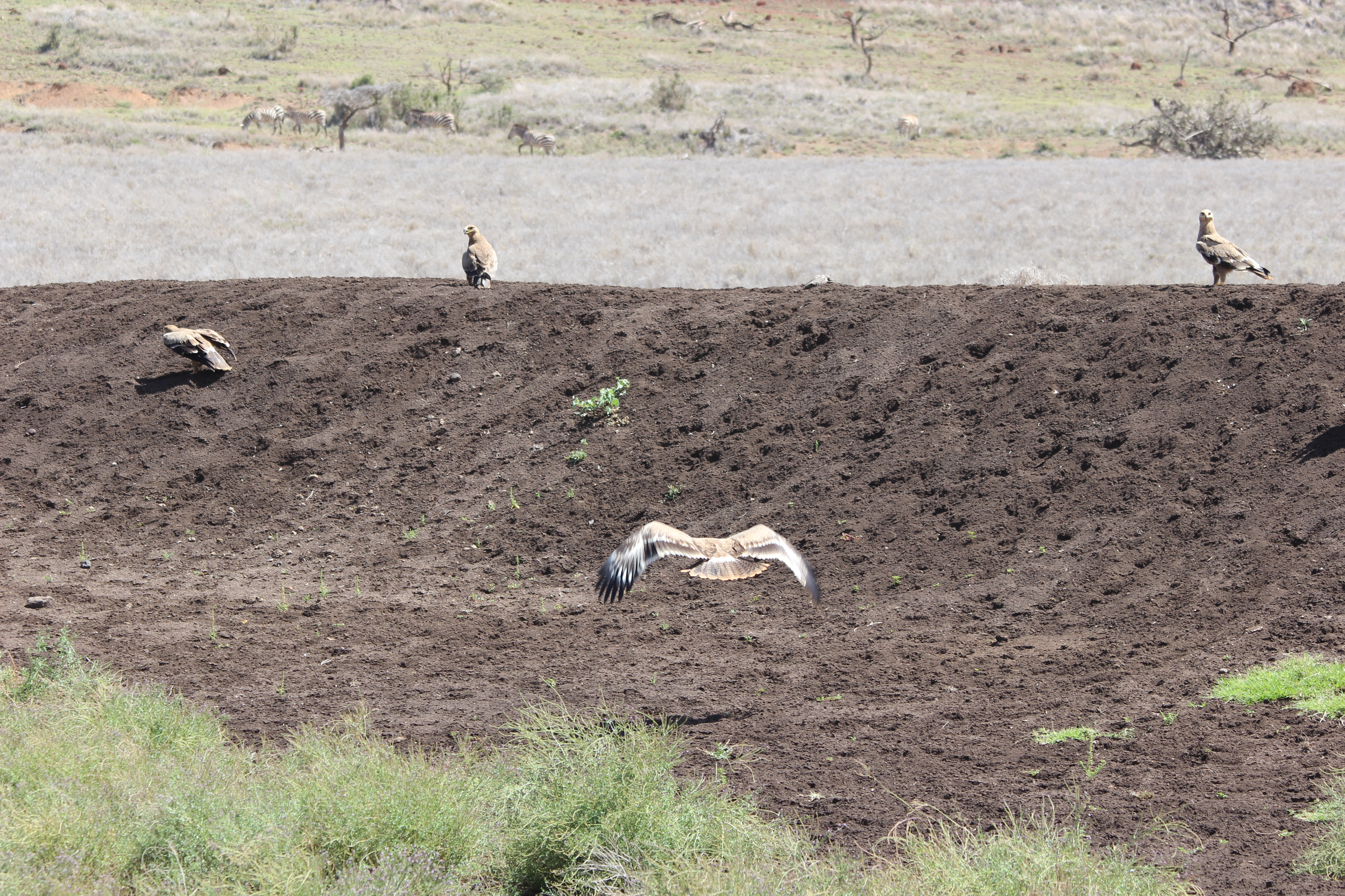 Upon our arrival we were greeted by Karamoosh(Moosh) the manager of the lodge and our driver Emmanuel, we had a game drive on the way back to Lewa Wilderness for lunch. Lewa is a sanctuary for Rhinoceros and a blending of other species between the Mara and Samburu. We started seeing different species not far from the air trip. We saw Waterbuck and Impala which are fairly ubiquitous in both areas. We got to see our first Common zebra, this species differs from the Grevy’s zebra in the distance between their stripes and the size of their ears. I have a side by side where you can see the differences. We again saw Reticulated giraffe, African crowned cranes and our first sighting of a rhino. There were Sacred Ibis, which have been found mummified in Egyptian tombs and we encountered a migratory flock of Tawny eagles. There were at least 100 of them circling and landing in a small dry pond. Tawny eagles migrate from the steppes of Russia to the continent of Africa. We also saw a small herd of African or Cape buffalo. We later learned that a large part of the herd had been lost due to the extreme drought.