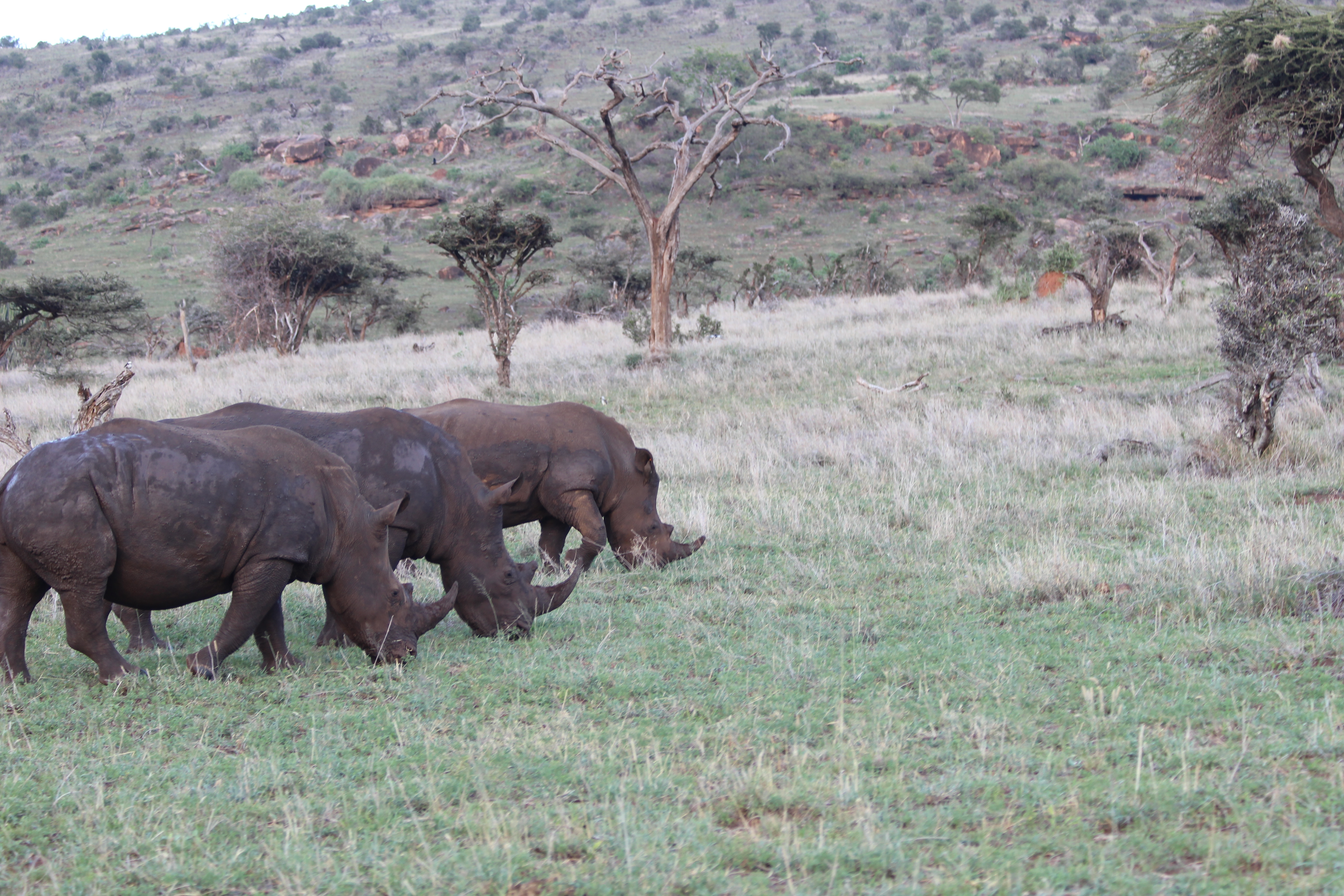 There was a lot to see this afternoon as the terrain was was different from where we left this morning. It really began to sink in how marvelous God’s world is and the way it all works together. All of the animals have their purpose and it all seems to balance out. We saw large herds of zebra, some giraffe and more elephants. We topped off the day with our first encounter with some White Rhinoceros. They aren’t really white but when English speakers heard Afrikaans speakers call them WIDE Rhino because of their mouth they thought they were saying “white” and the name stuck. They really are just gigantic lawn mowers and the largest of the two species of rhino we would see. We then worked our way back to our lodgings where we were welcomed by a warm fire in our cottage and a wonderful dinner together with other guests from around the world. We had Americans, Argentinians, British and of course Kenyans all at the same table.