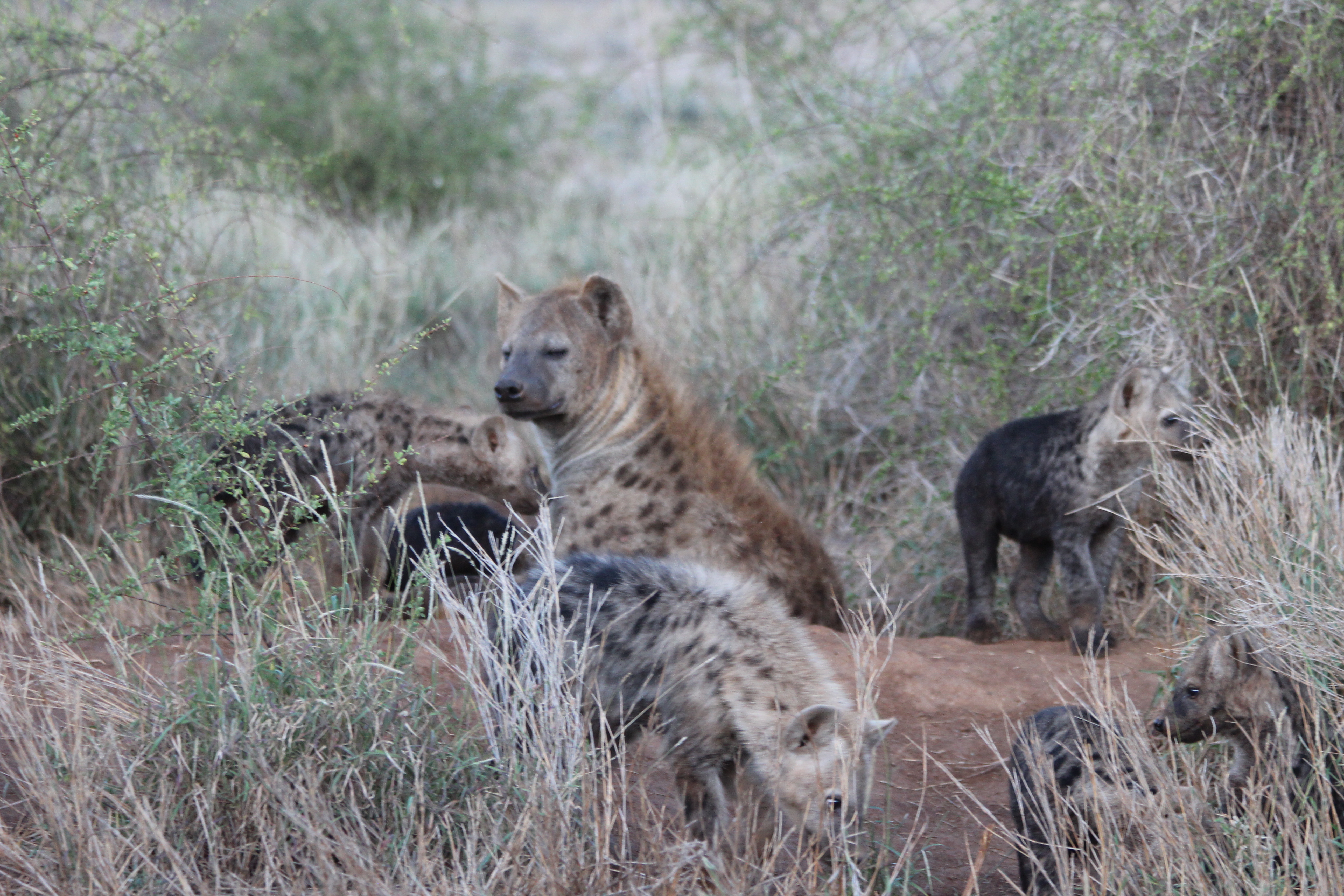 We tried to track our Leopard again without success. This afternoon we went to the Lewa Conservancy operations center and learned how the conservancy is operated and the measures that are taken to monitor and preserve the rhino. On our way back to Lewa Wilderness we encountered a den of Spotted hyena, they had lots of cubs and were pretty cute. The darker the cub, the younger it is.