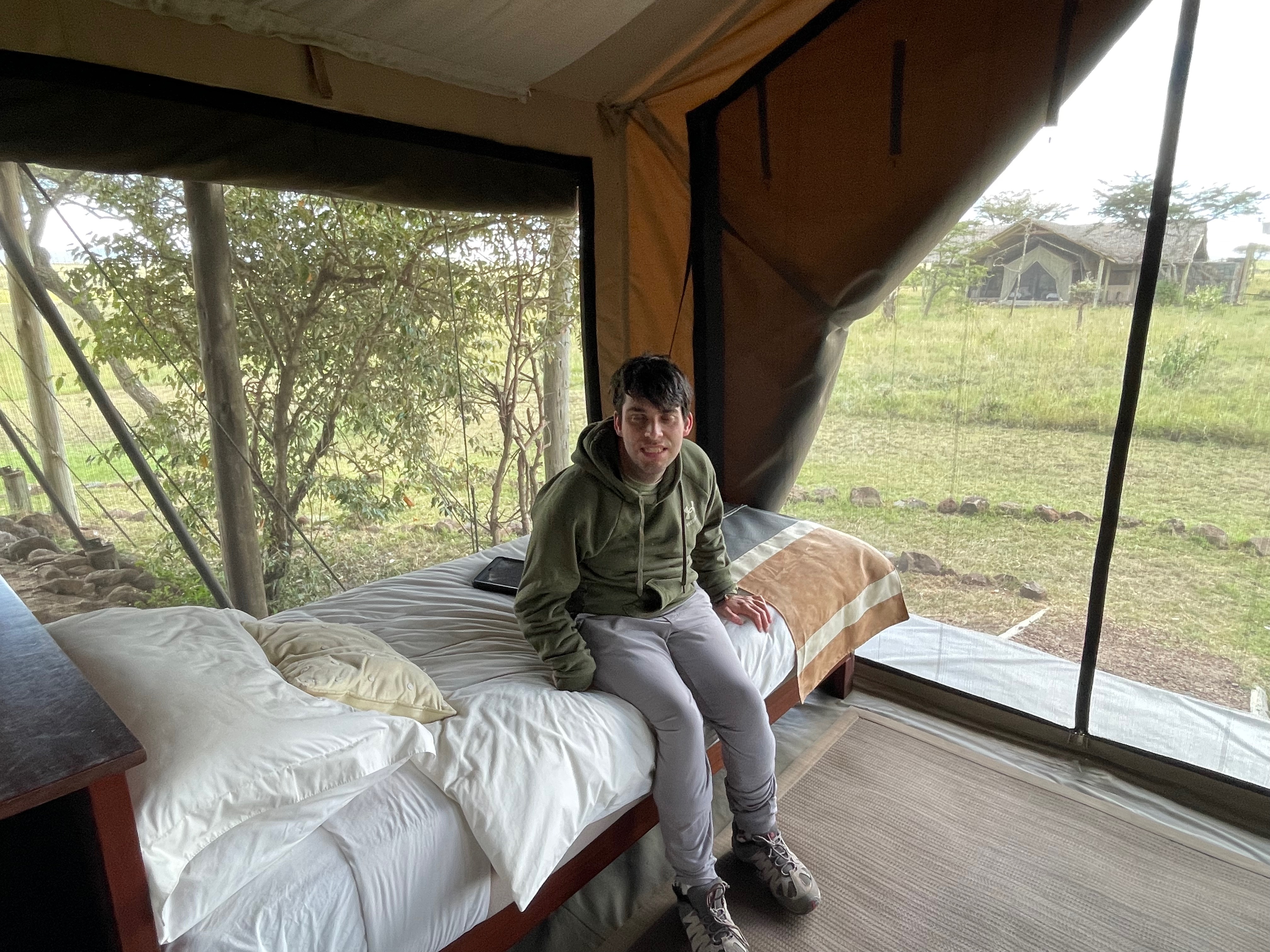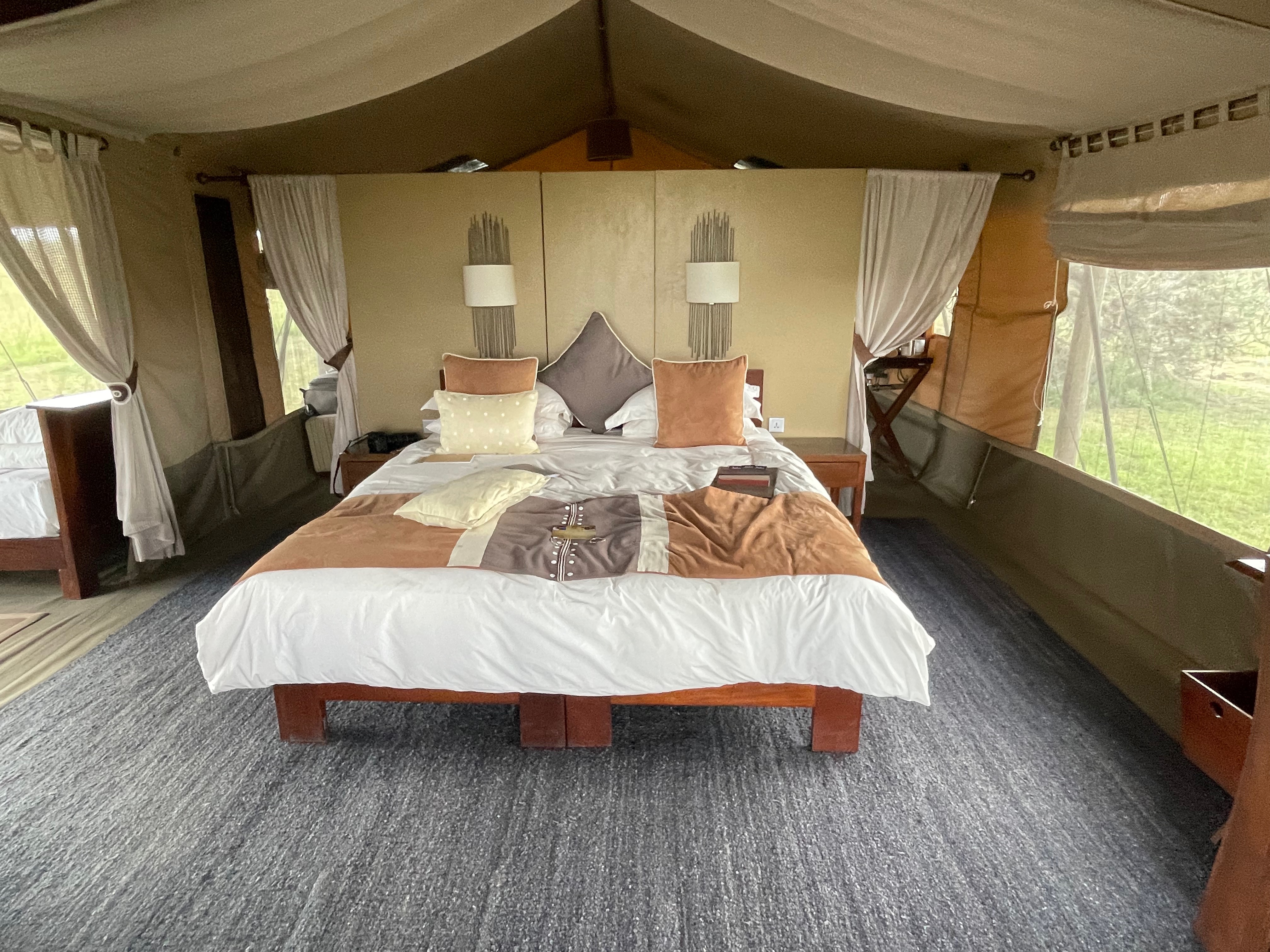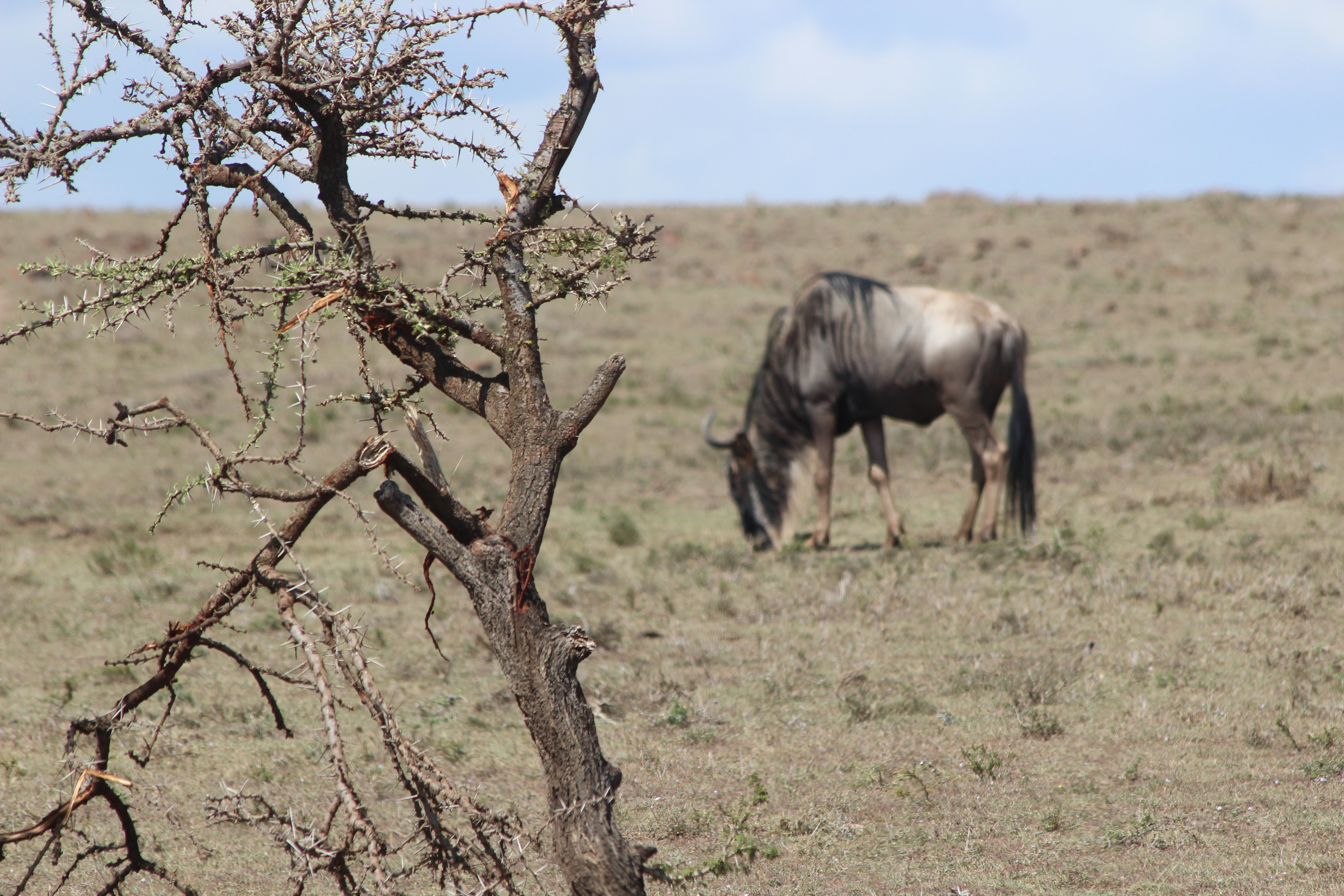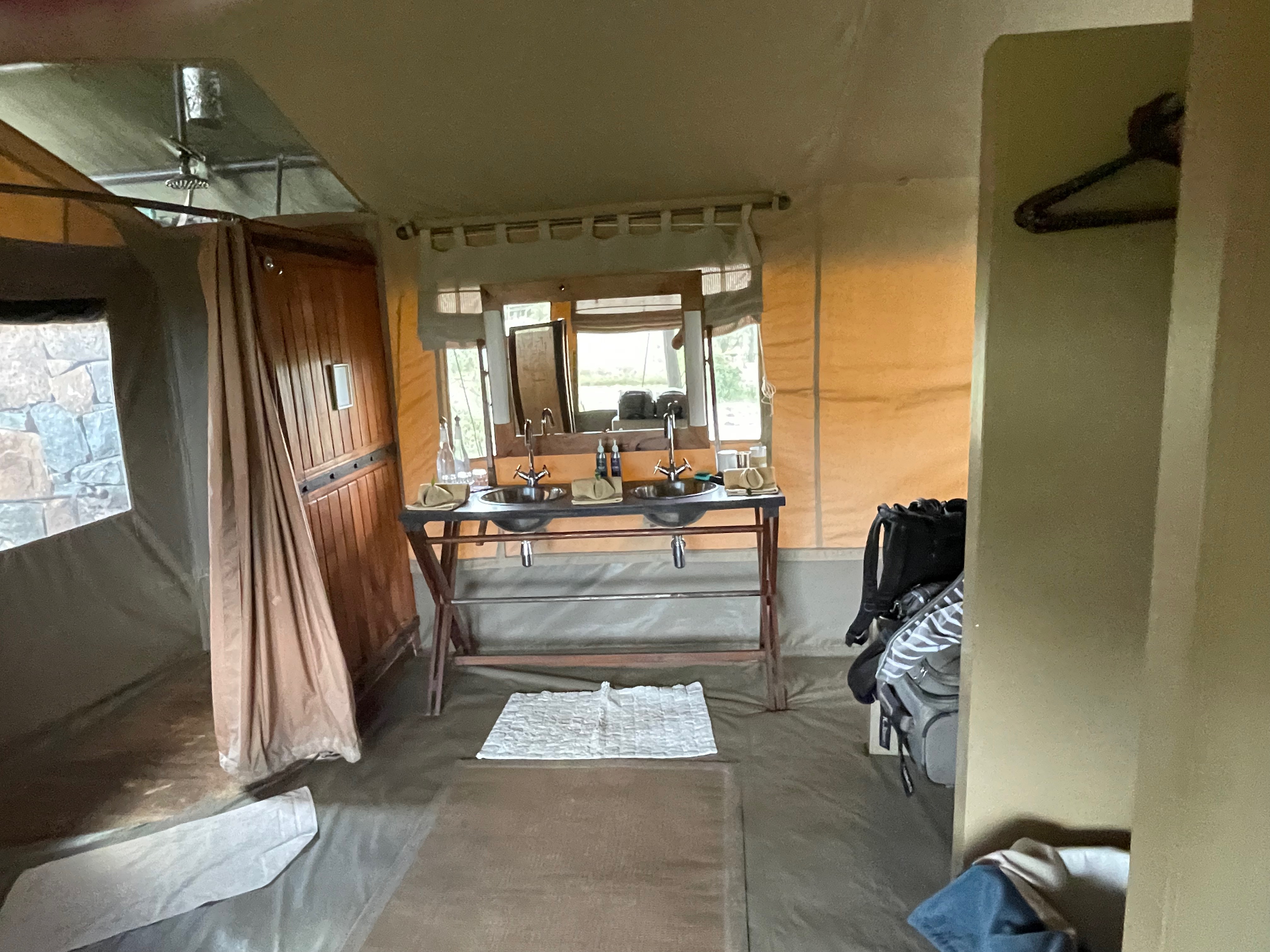 We flew to the Maasai Mara on a beautify sunny Tuesday morning. It was nice and smooth and we landed just in time short a short game drive on the way to our camp. Naboisho is a conservancy that was created by 500 Maasi tribal families to preserve nature and wildlife. They moved all of their villages outside of the area but are still allowed to graze cattle if they like. We saw more herd animals and saw our first Wildebeest of the trip. Such funny looking animals. They look like God had a bunch of part left over and just stuck them all together. We arrived at Naboisho Camp and settled into our “tent” It really was unlike our other accommodations and more like a tent; however, we had both indoor and outdoor showers, hot and cold running water, electricity and all the modern day facilities. Bret even had his own side tent.