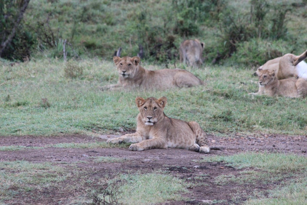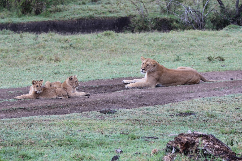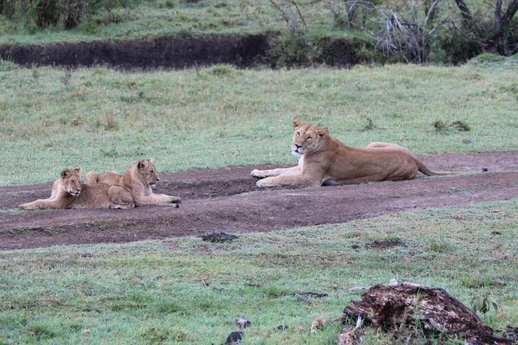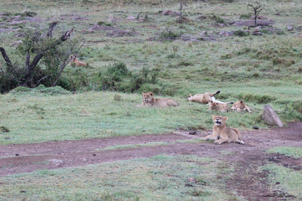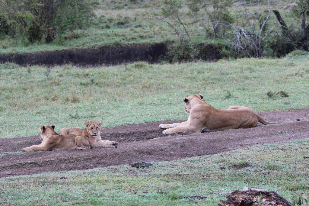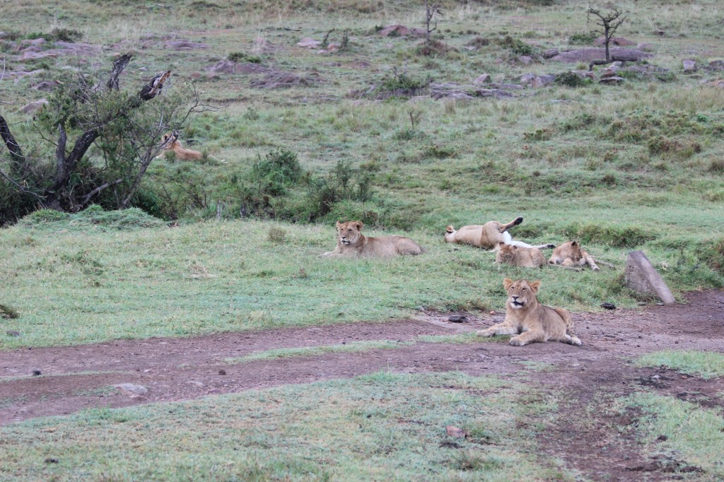 Tuesday afternoon we set out on our first ever Mara game drive. The terrain is much different than Samburu and Lewa, much more like what I had envisioned Kenya to be like. It threatened rain which was much needed due to the severe drought. We saw a really large herd of Bat Eared Fox, Cape Buffalo, Jackels and LIONS.