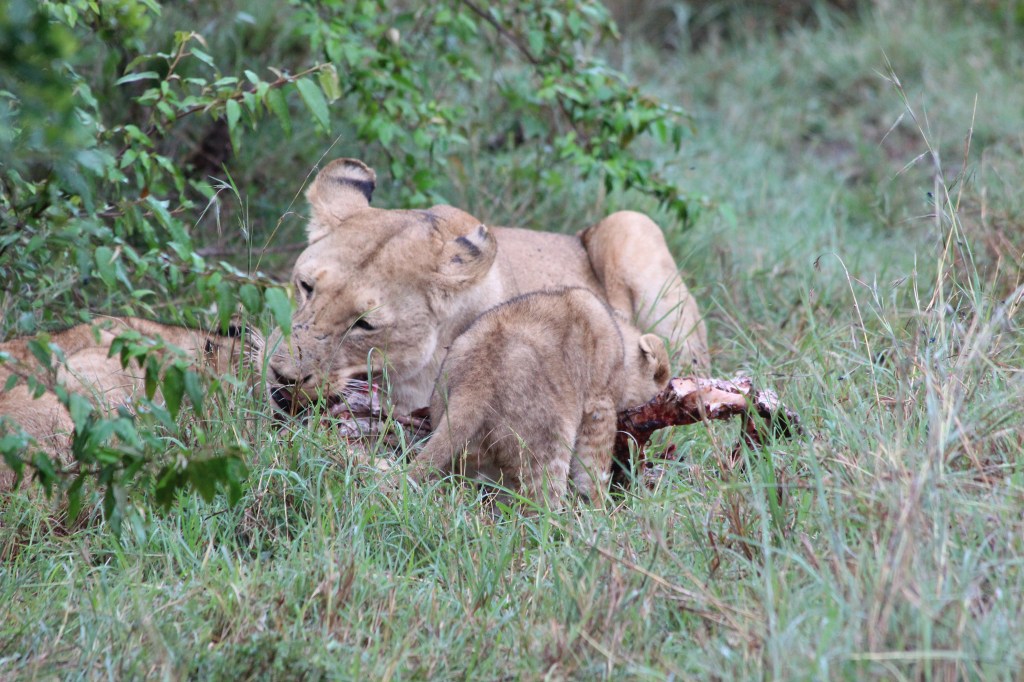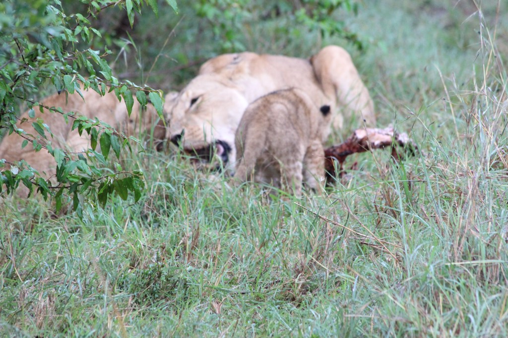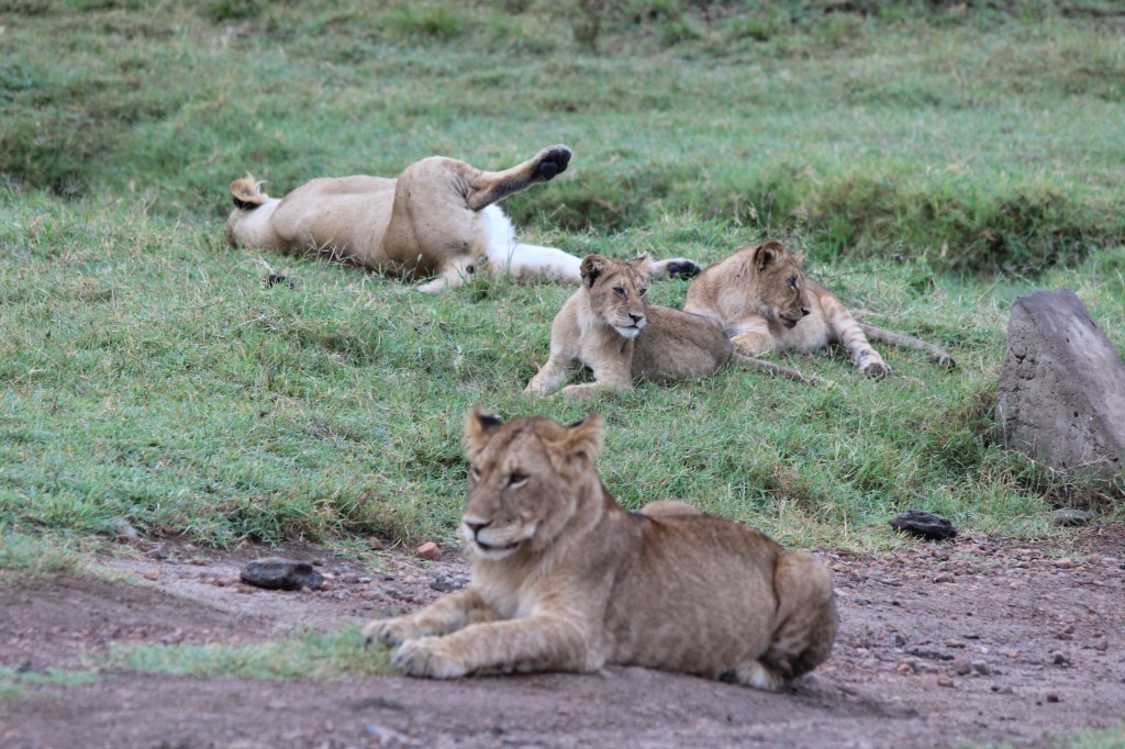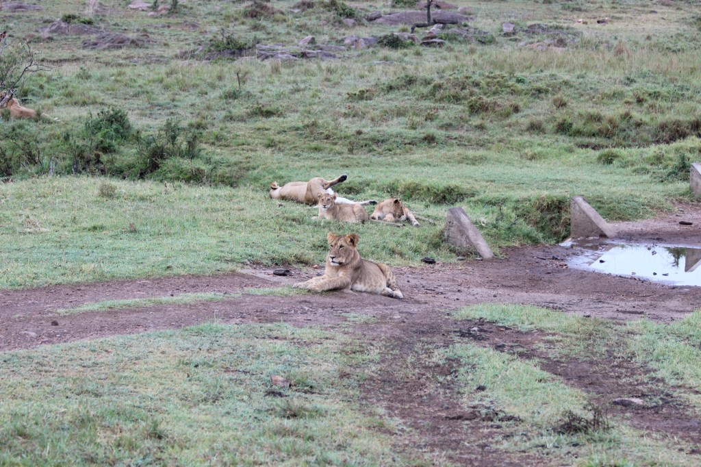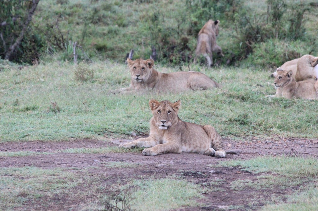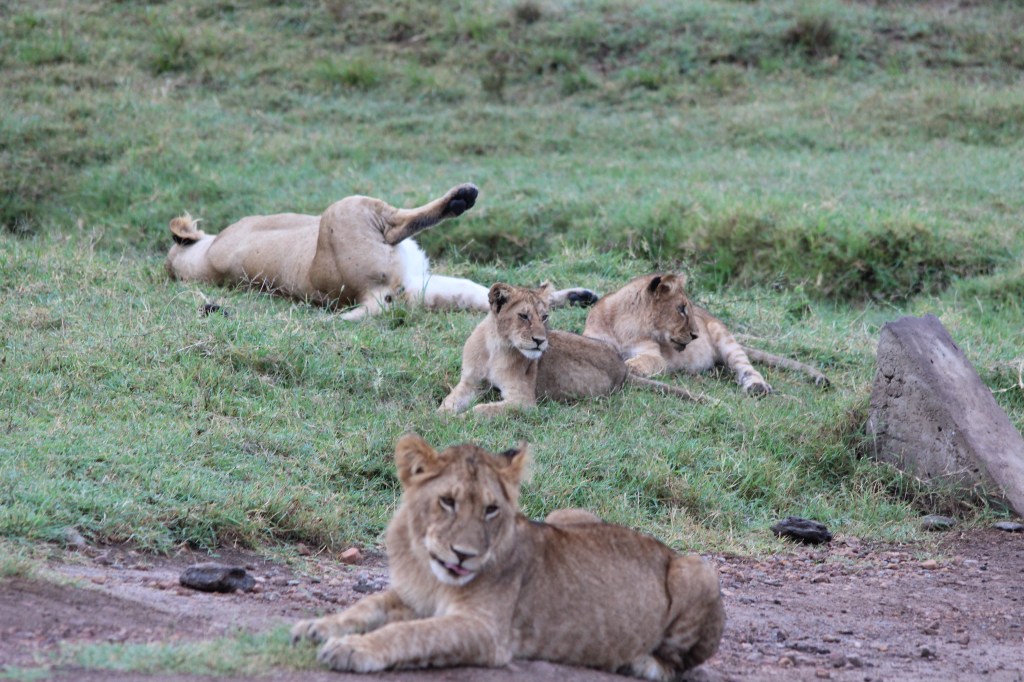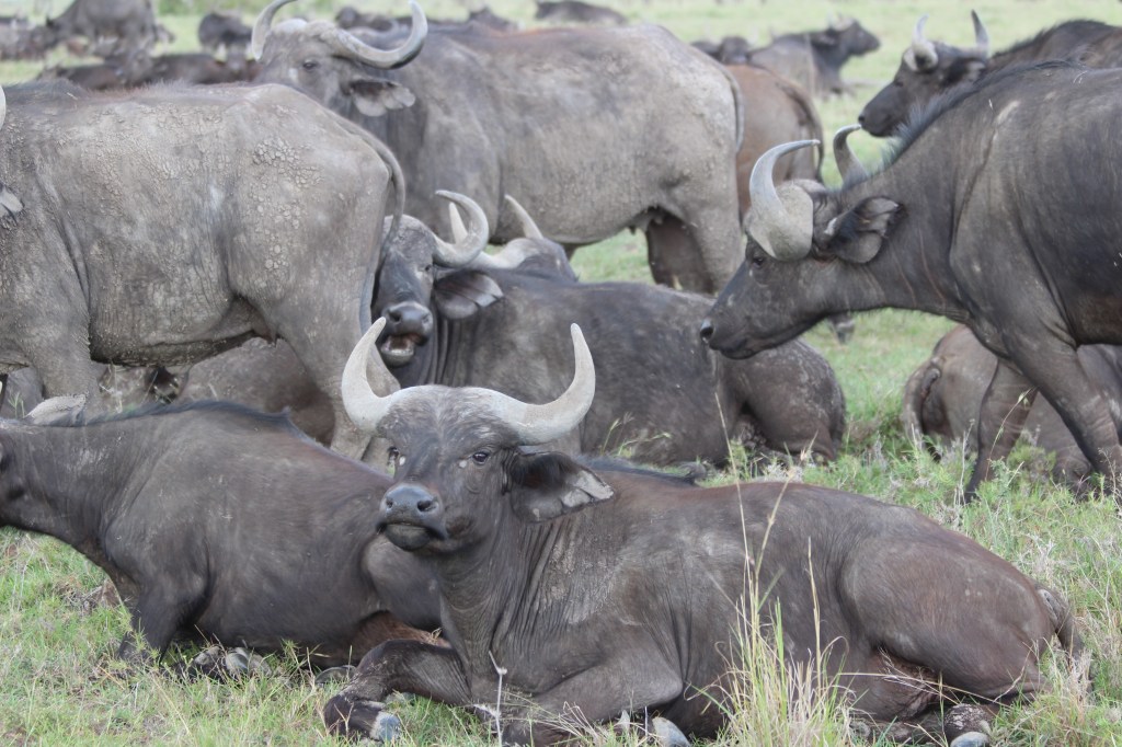 Tuesday afternoon we set out on our first ever Mara game drive. The terrain is much different than Samburu and Lewa, much more like what I had envisioned Kenya to be like. It threatened rain which was much needed due to the severe drought. We saw a really large herd of Bat Eared Fox, Cape Buffalo, Jackels and LIONS.
