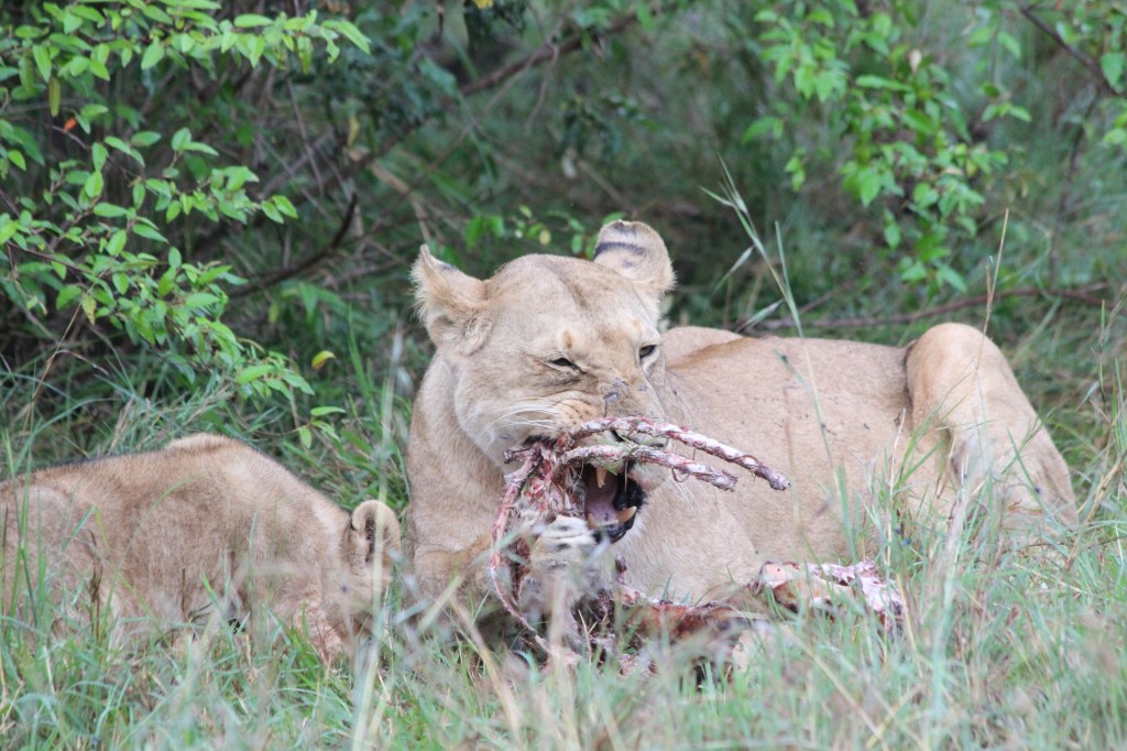 We were greeted with the amazing sunrise on Wednesday morning. The photograph doesn’t do it justice. More lion cubs and lioness post hunt. The lower images show them gnawing on a zebra skull and bones. The crunching was a little unnerving. The just ignored us, it was very weird being so close to them and hearing their soft grunts and snarls when someone stuck a toe out of line. No males in this bunch this morning, probably sleeping off a zebra coma in the brush.