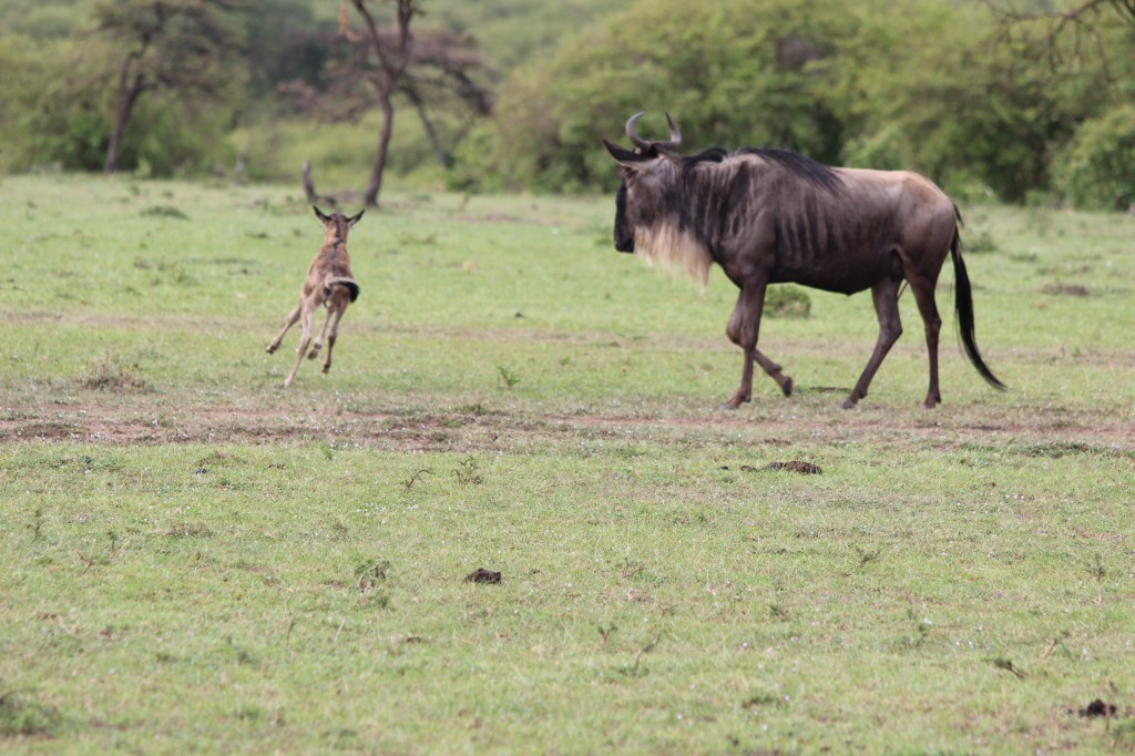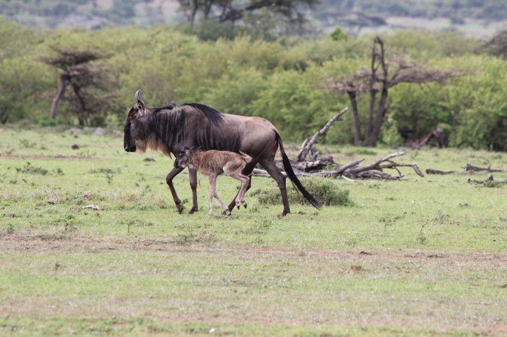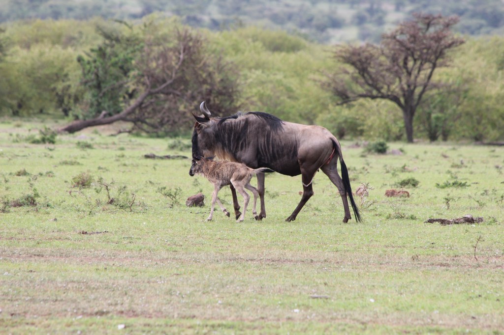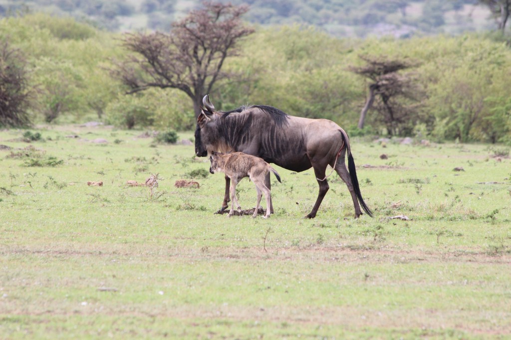 One of the highlights of our morning drive was to see a newborn Wildebeest. It was just getting up on its legs when we found it. It jumped around and had a little fun before he settled in to nurse. The afterbirth was still attached to mom. Nearly all Wildebeest calves are born at the same time of the year. Hope you make it little one.